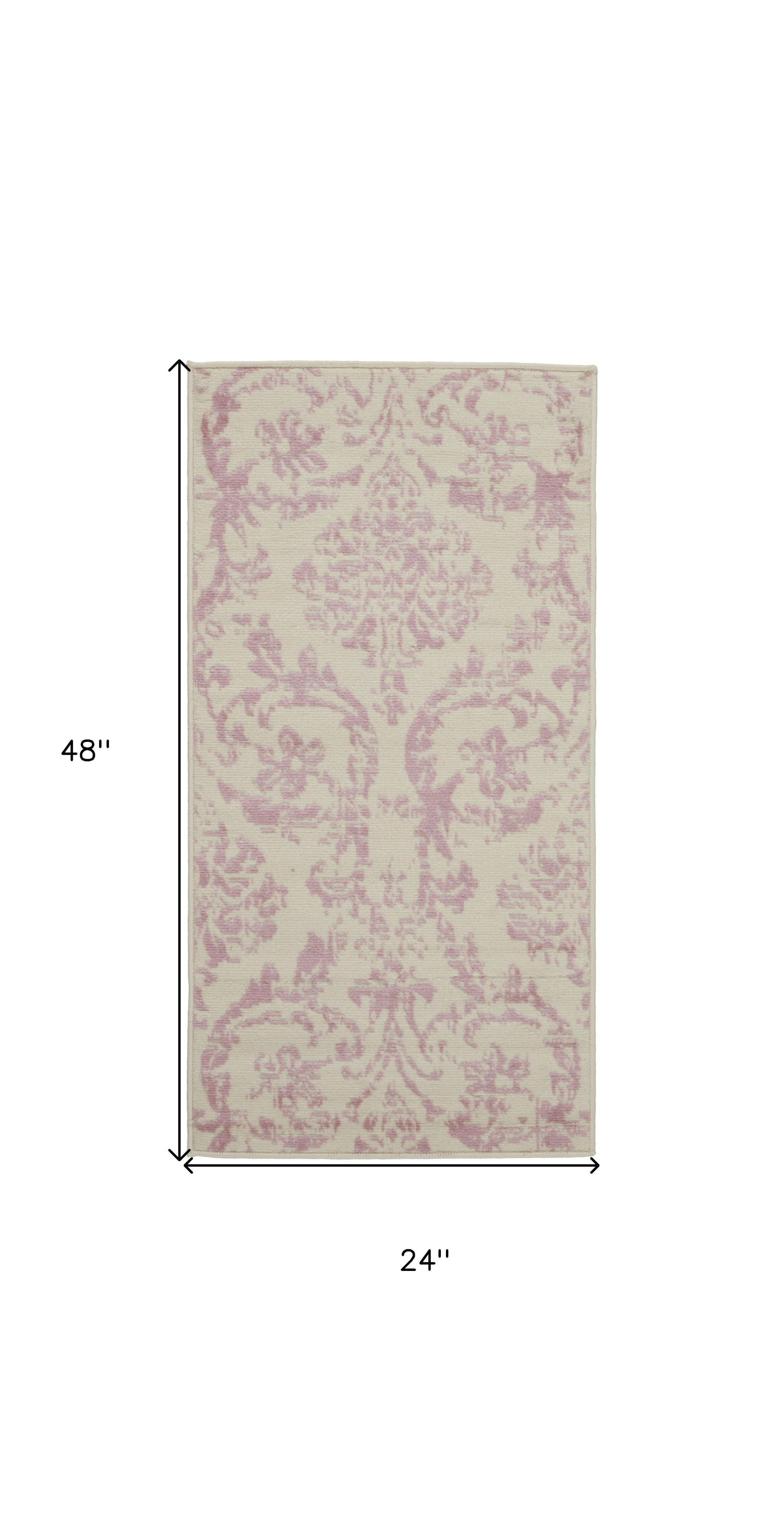 This 2' x 4' cream damask power loom area rug, is a great way to add warmth to a room. This rectangle shaped rug features a damask design in cream to give it visual interest. A classic shape marries with good looking design for your space This superior Turkish rug represents the highest quality and is built to last. Place this area rug against a hardwood or tile floor and it will enliven your living space with style and sophistication. .50" H x 24" W x 48" D