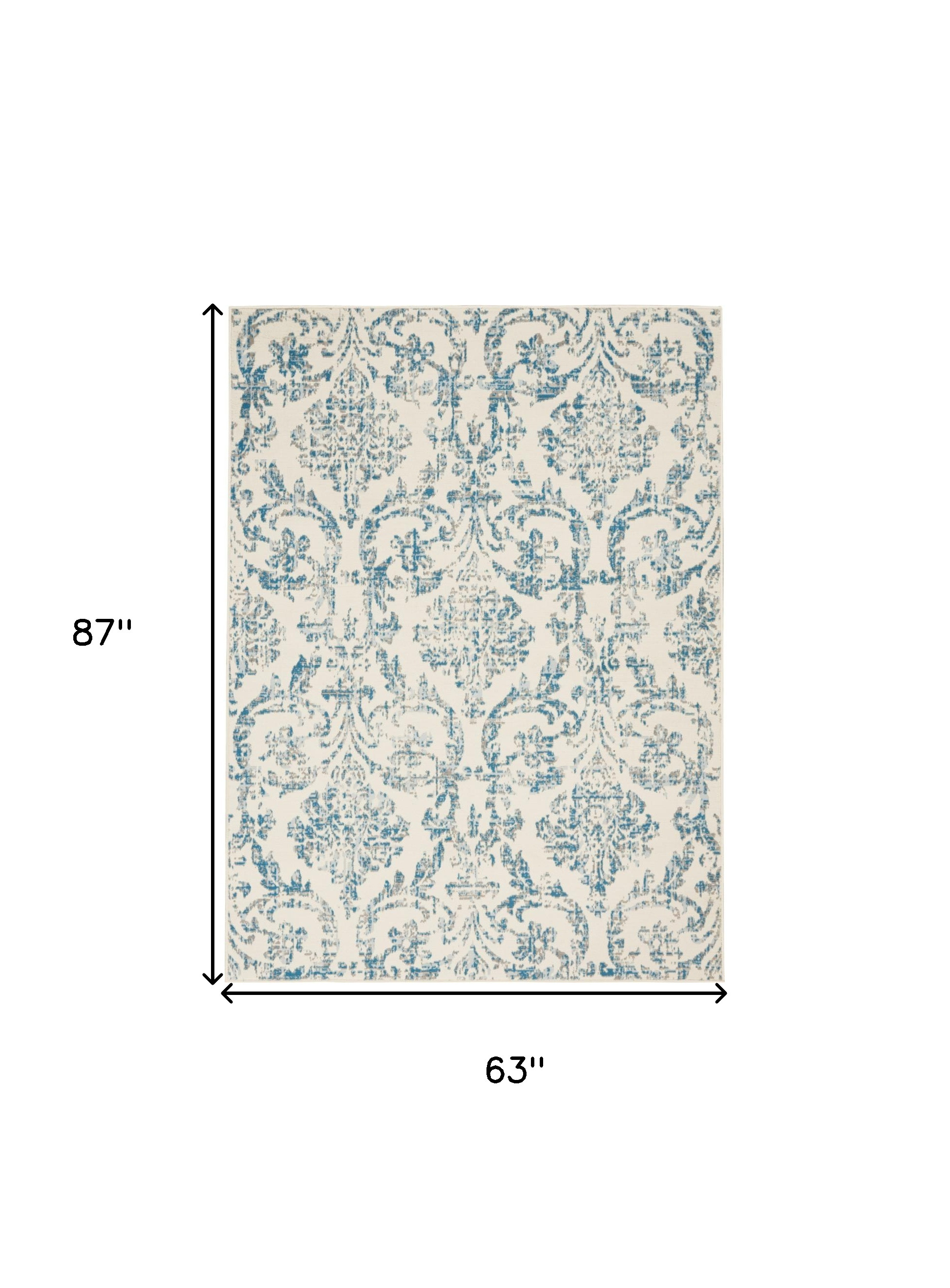This 5' x 7' cream damask power loom area rug, is a great way to add warmth to a room. This rectangle shaped rug features a damask design in cream to give it visual interest. A classic shape marries with good looking design for your space This superior Turkish rug represents the highest quality and is built to last. Area Rugs help to give warmth and sense of home to your space. .50" H x 63" W x 87" D