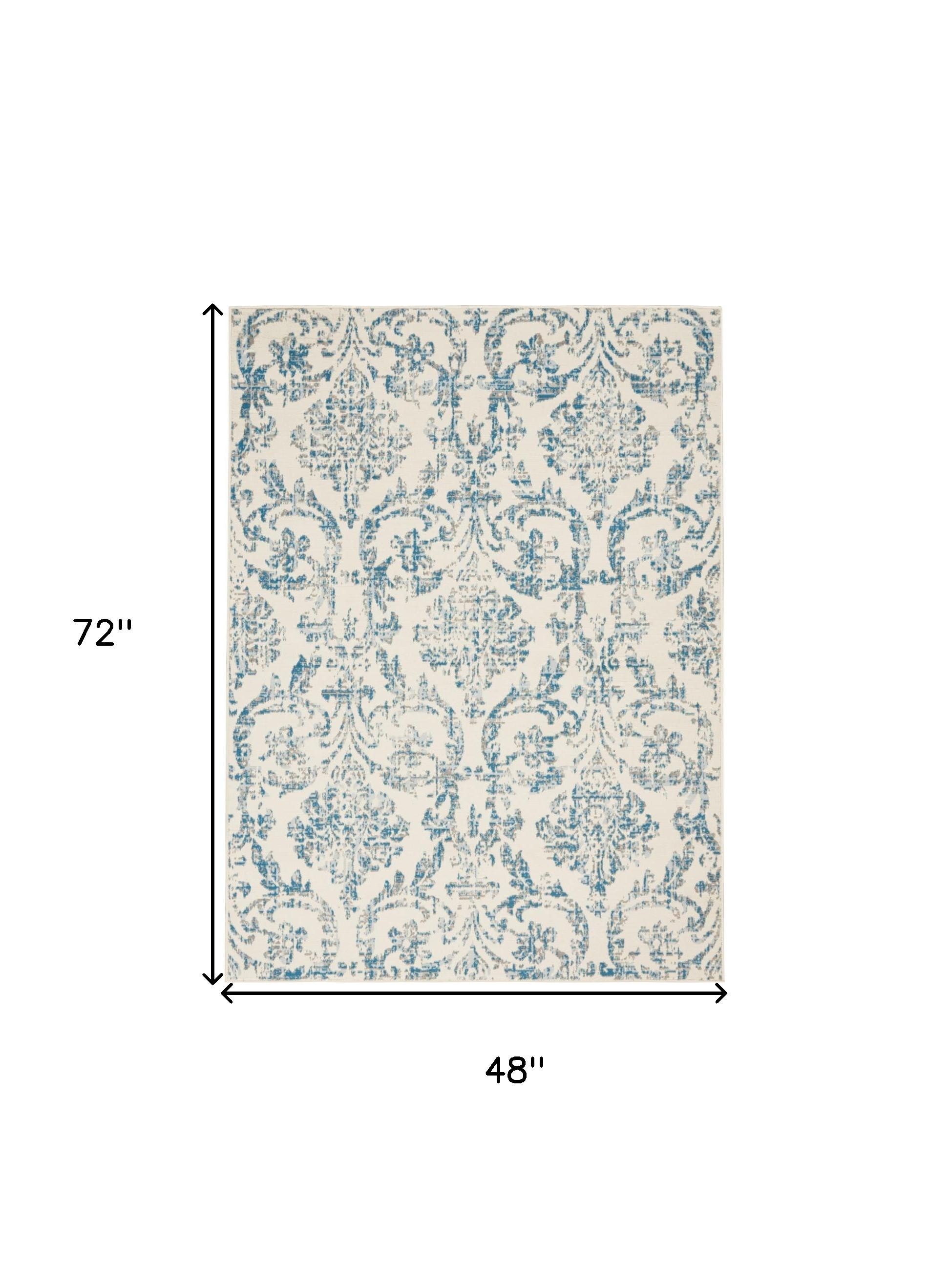 Add great coloration and comfortable texture to your space with this 4' x 6' cream damask power loom area rug. This rectangle shaped rug features a damask design in cream to give it visual interest. A classic shape marries with good looking design for your space This superior Turkish rug represents the highest quality and is built to last. Place this area rug against a hardwood or tile floor and it will enliven your living space with style and sophistication. .50" H x 48" W x 72" D
