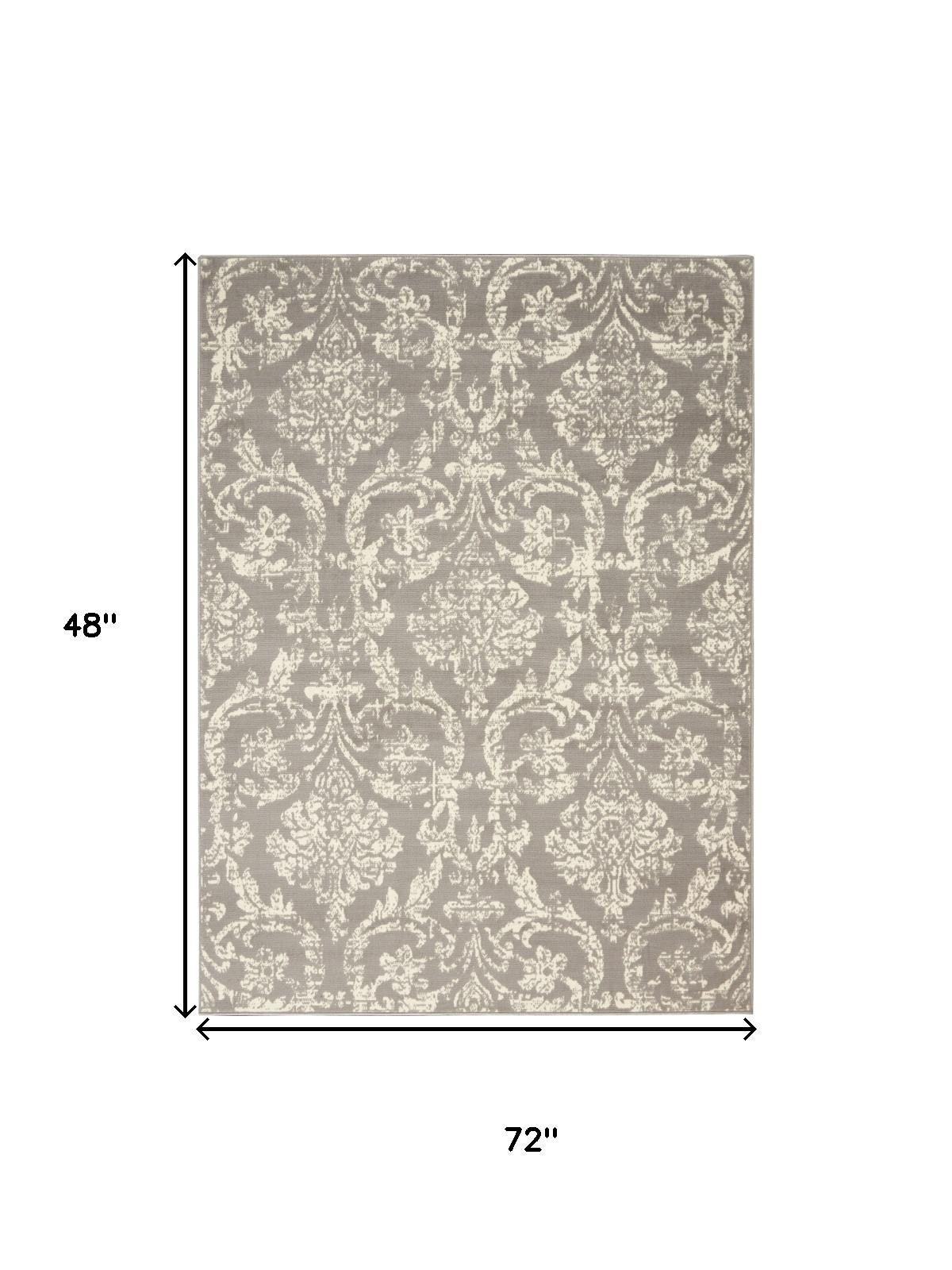 Add some artistry to your room with this 4' x 6' gray damask power loom area rug. This rectangle shaped rug features a damask design in gray to give it visual interest. A classic shape marries with good looking design for your space Made in Turkey, this rug offers high quality combined with good looking designer sensibilities. Area Rugs help to give warmth and sense of home to your space. .50" H x 48" W x 72" D