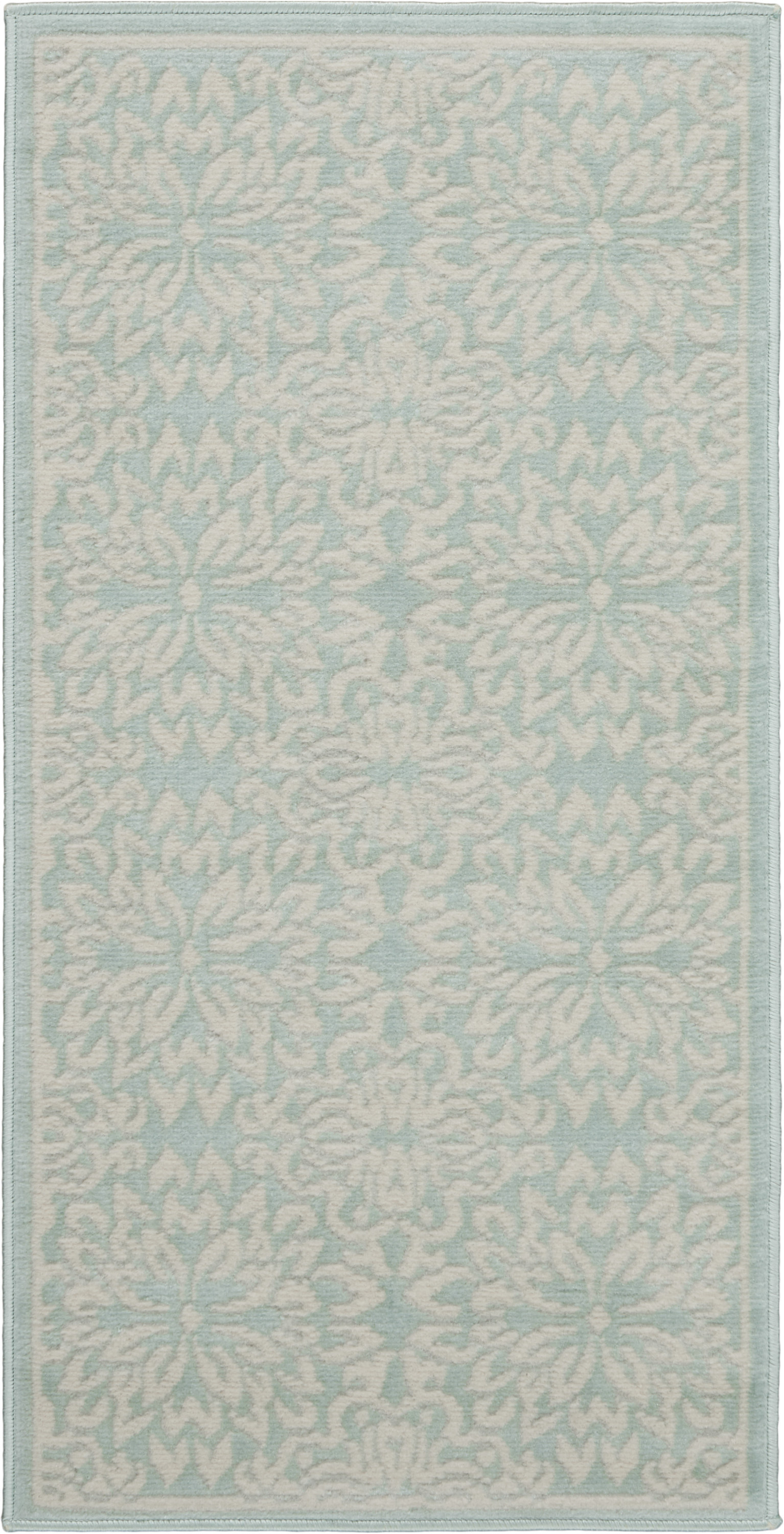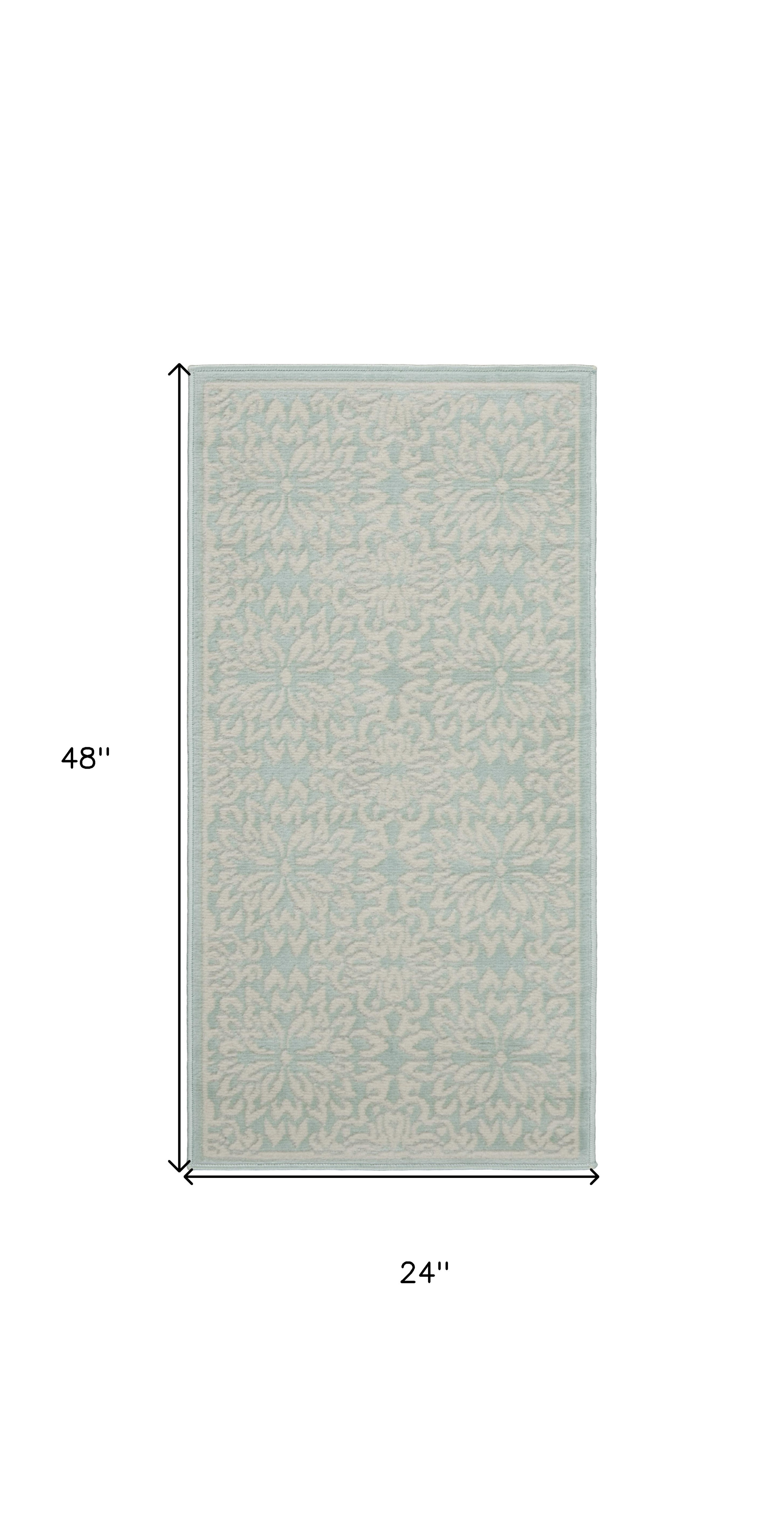 Add great coloration and comfortable texture to your space with this 2' x 4' aqua floral power loom area rug. This rectangle shaped rug features a floral design in aqua to give it visual interest. A classic shape marries with good looking design for your space Made in Turkey, this rug offers high quality combined with good looking designer sensibilities. Area Rugs help to give warmth and sense of home to your space. .50" H x 24" W x 48" D