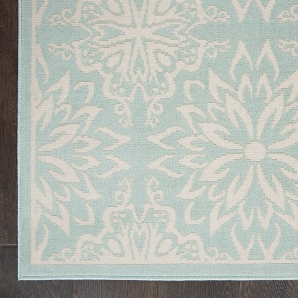 Set an inviting tone in your space with this 4' x 6' aqua floral power loom area rug. This rectangle shaped rug features a floral design in aqua to give it visual interest. A classic shape marries with good looking design for your space Made in Turkey, this rug offers high quality combined with good looking designer sensibilities. Area Rugs help to give warmth and sense of home to your space. .50" H x 48" W x 72" D