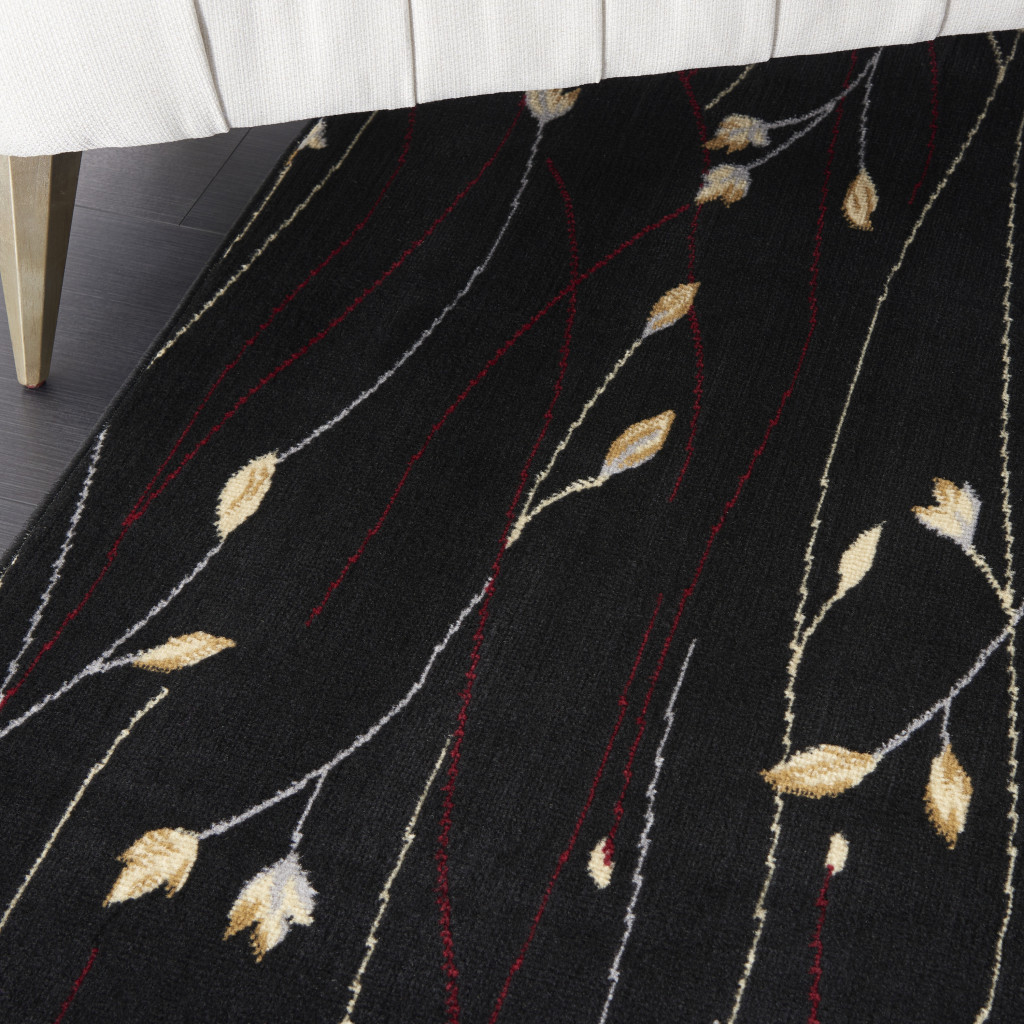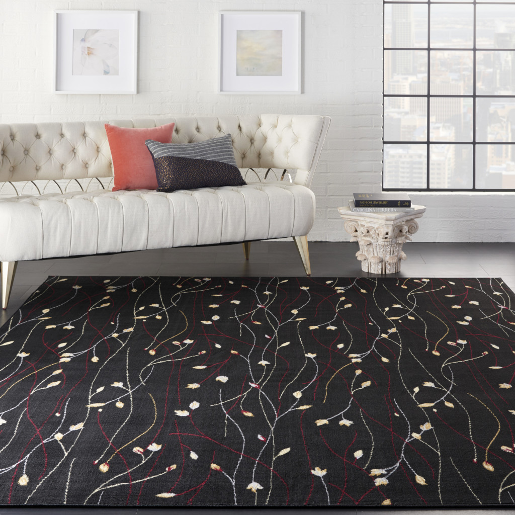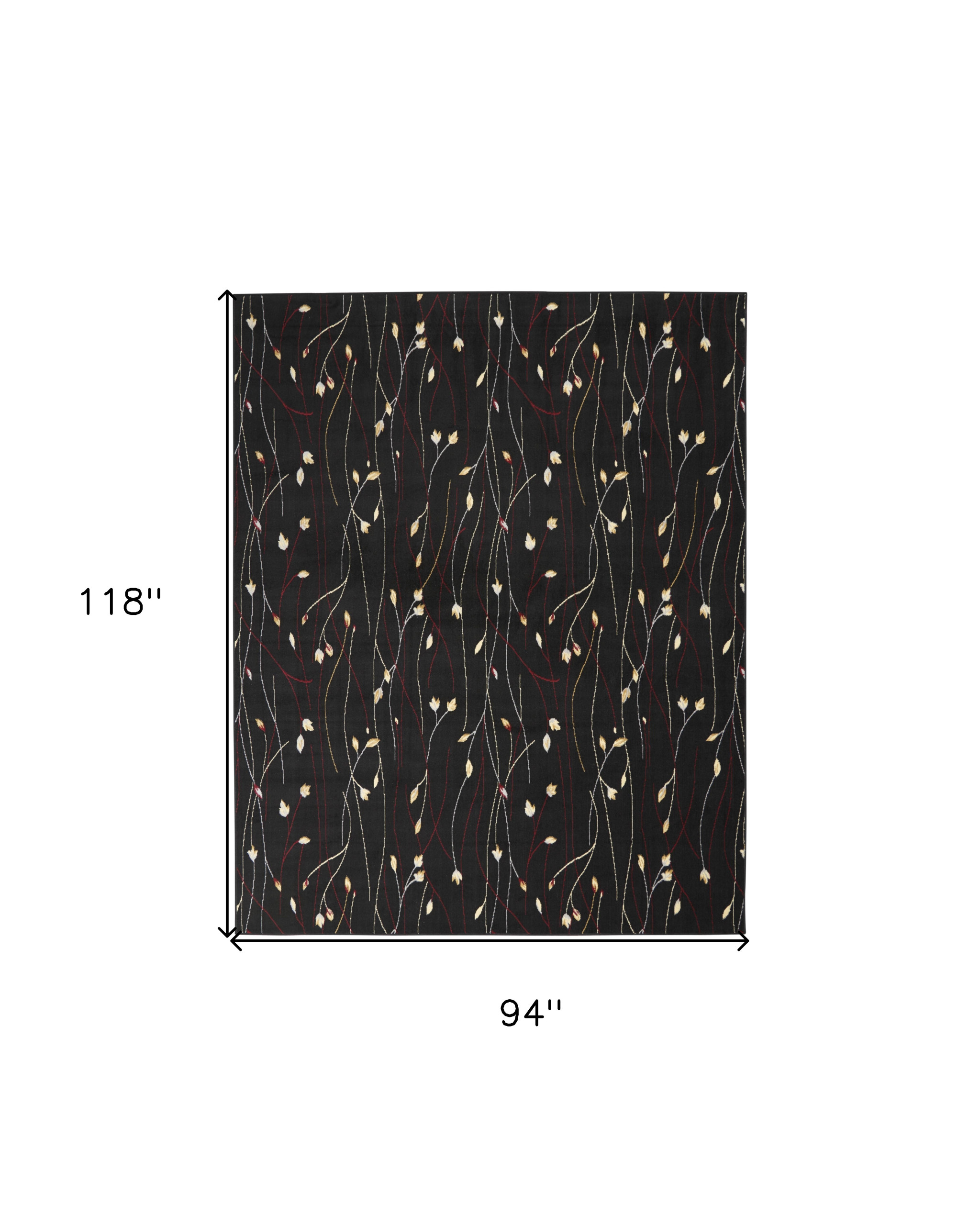 Add some artistry to your room with this 8-foot x 10-foot black and ivory floral power loom non skid area rug. This rectangle shaped rug features a floral design in black and ivory to give it visual interest. A classic shape marries with good looking design for your space place this area rug against a hardwood or tile floor and it will enliven your living space with style and sophistication. 94-inch H x 118-inch W x 0.5-inch D