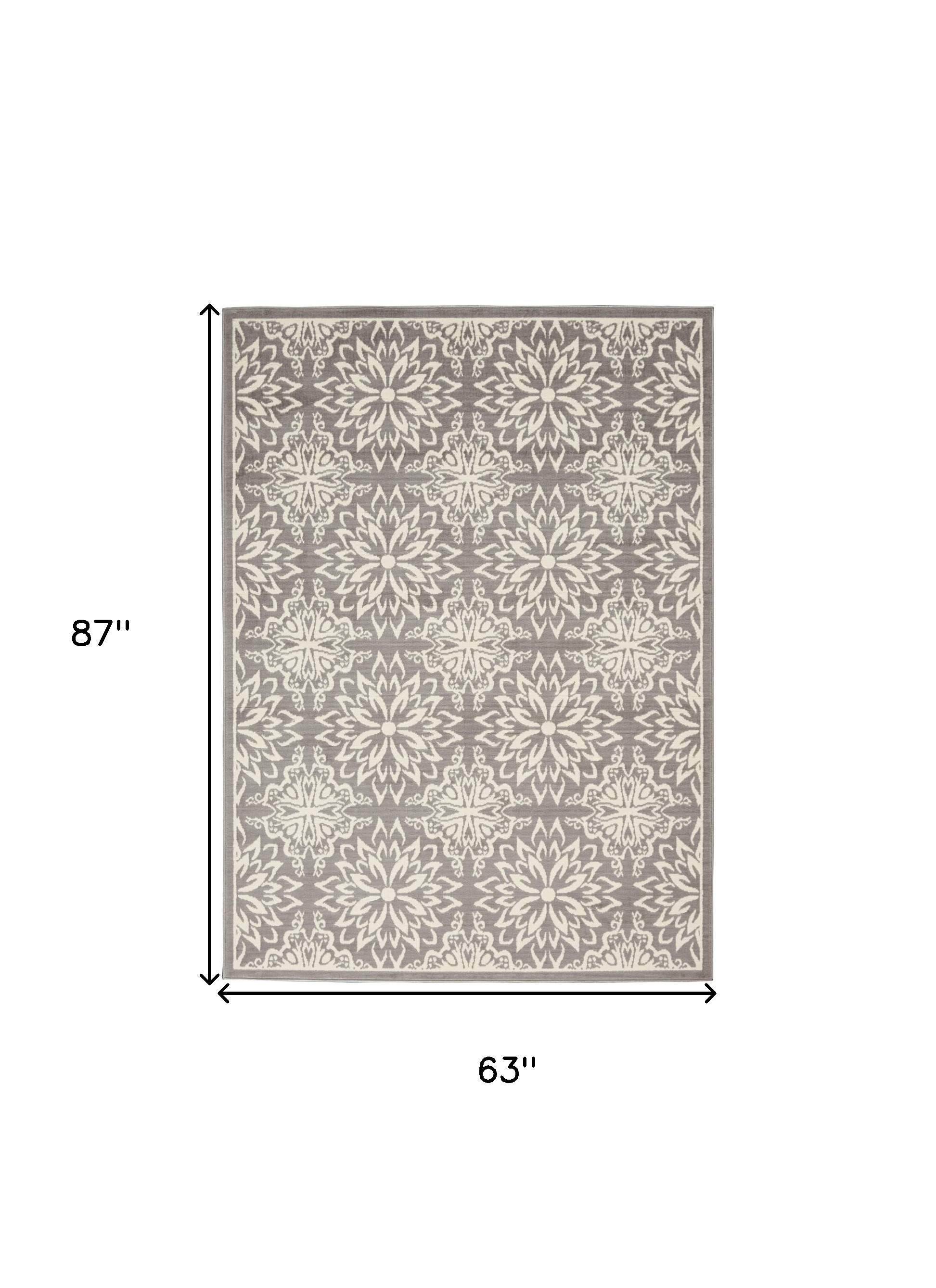 Add great coloration and comfortable texture to your space with this 5' x 7' gray floral power loom area rug. This rectangle shaped rug features a floral design in gray to give it visual interest. A classic shape marries with good looking design for your space Made in Turkey, this rug offers high quality combined with good looking designer sensibilities. Place this area rug against a hardwood or tile floor and it will enliven your living space with style and sophistication. .50" H x 63" W x 87" D