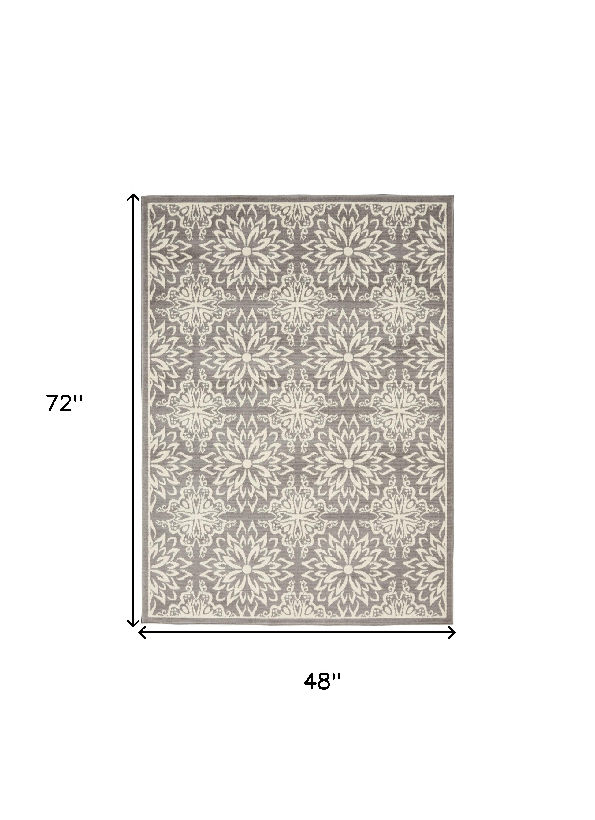 Add some artistry to your room with this 4' x 6' gray floral power loom area rug. This rectangle shaped rug features a floral design in gray to give it visual interest. A classic shape marries with good looking design for your space This superior Turkish rug represents the highest quality and is built to last. Area Rugs help to give warmth and sense of home to your space. .50" H x 48" W x 72" D