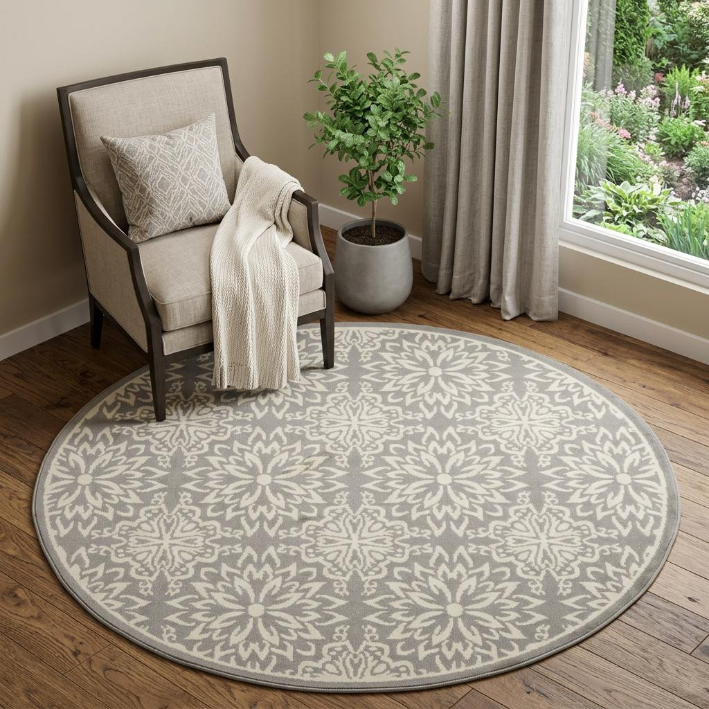 floral power loom area rug, loom area rug, power loom area rug, gray round floral power loom, round floral power loom area |