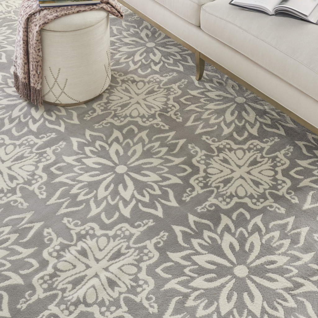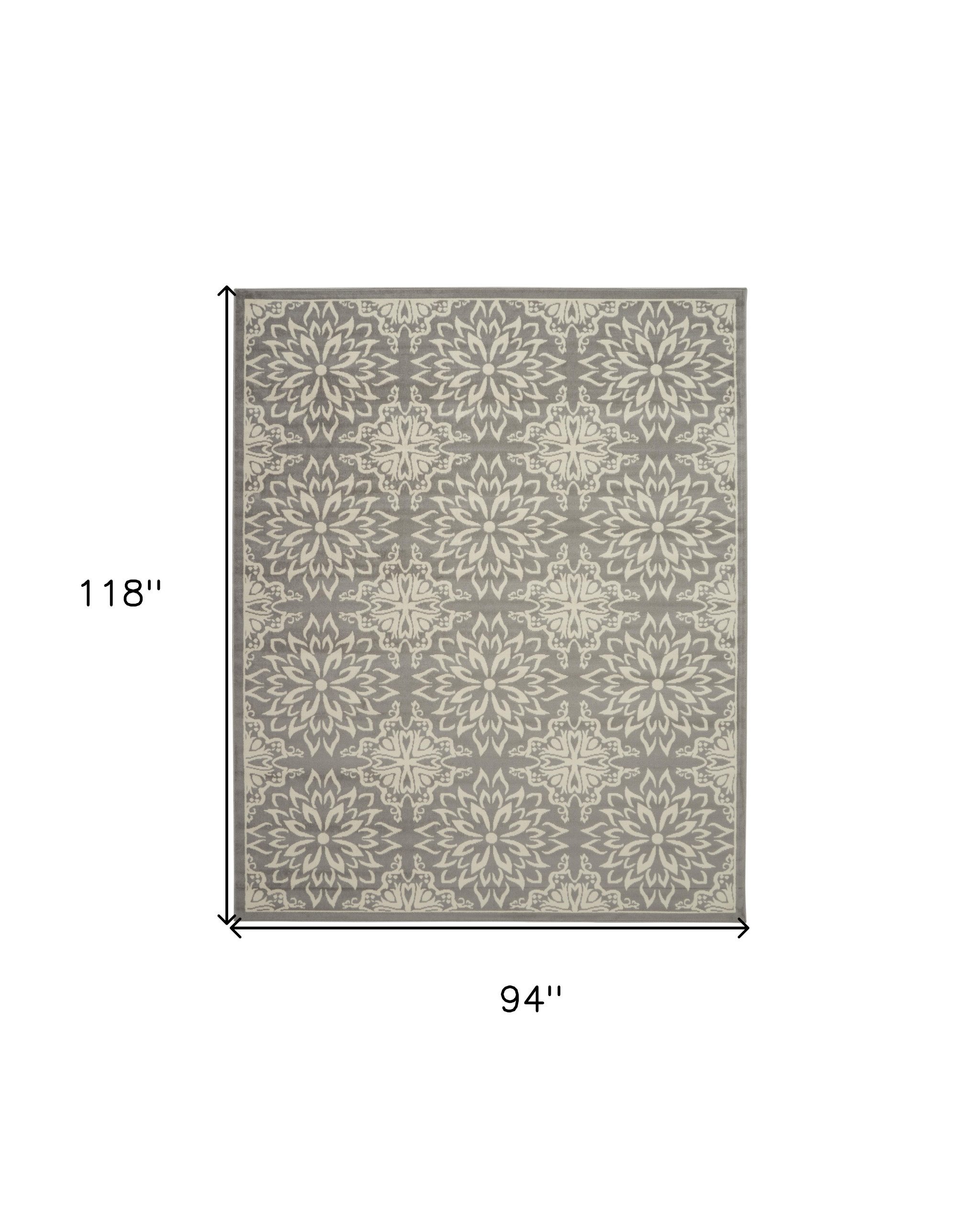 Add some artistry to your room with this 8' x 10' gray floral power loom area rug. This rectangle shaped rug features a floral design in gray to give it visual interest. A classic shape marries with good looking design for your space This superior Turkish rug represents the highest quality and is built to last. Area Rugs help to give warmth and sense of home to your space. .50" H x 94" W x 118" D