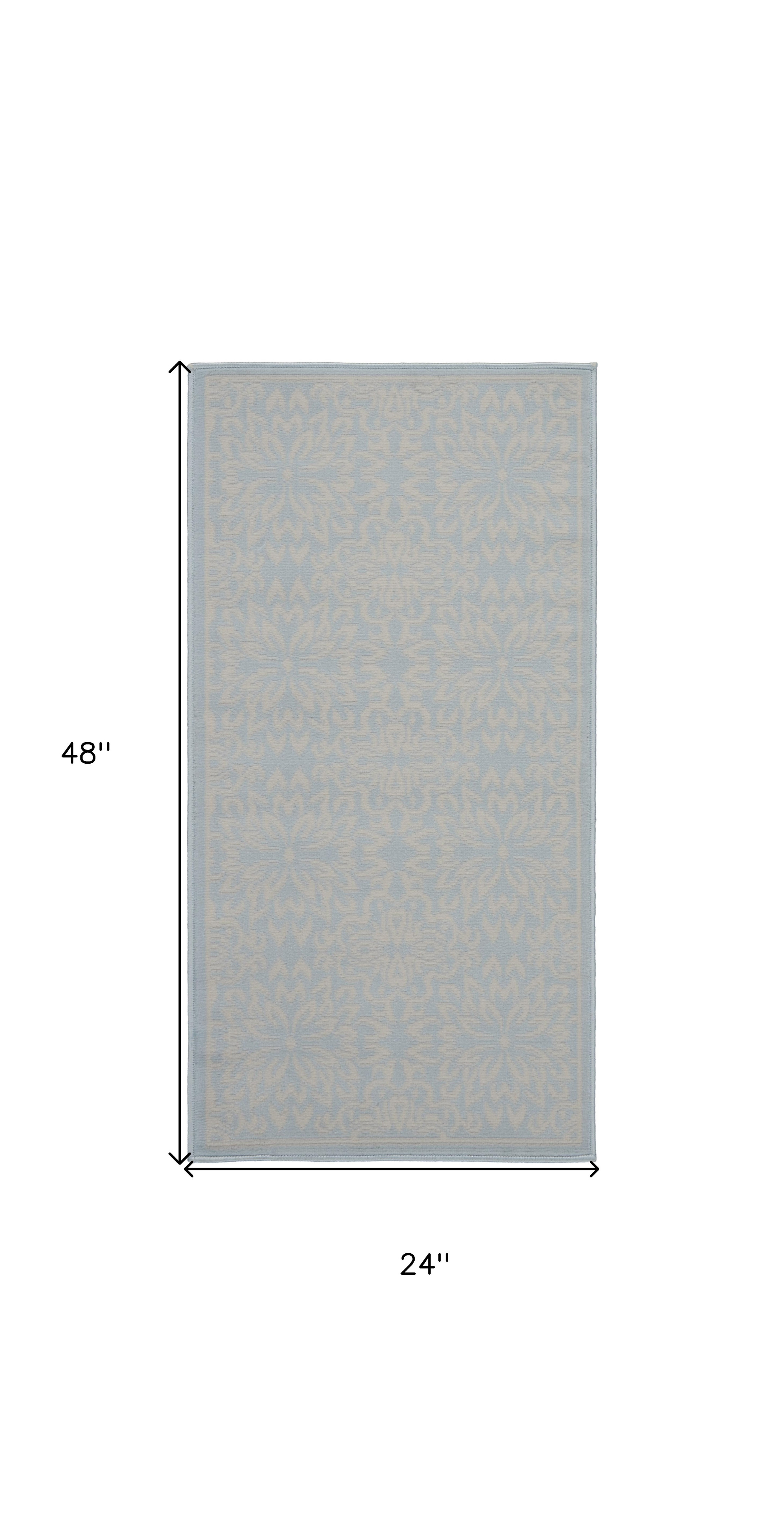 Add great coloration and comfortable texture to your space with this 2' x 4' light blue floral power loom area rug. This rectangle shaped rug features a floral design in light blue to give it visual interest. A classic shape marries with good looking design for your space This superior Turkish rug represents the highest quality and is built to last. Place this area rug against a hardwood or tile floor and it will enliven your living space with style and sophistication. .50" H x 24" W x 48" D
