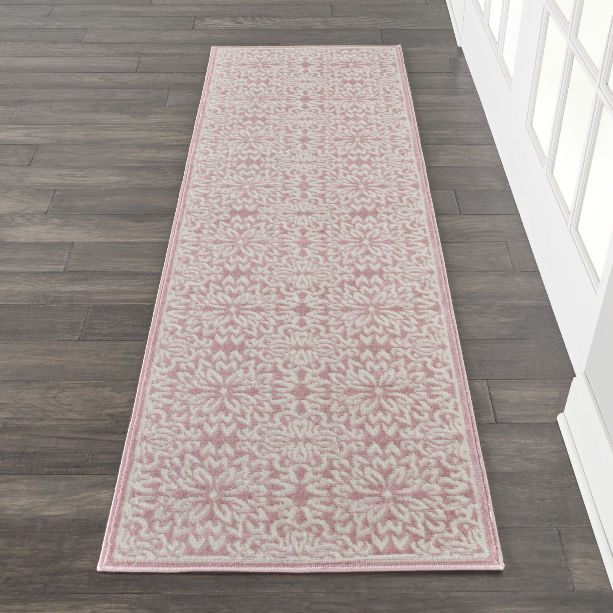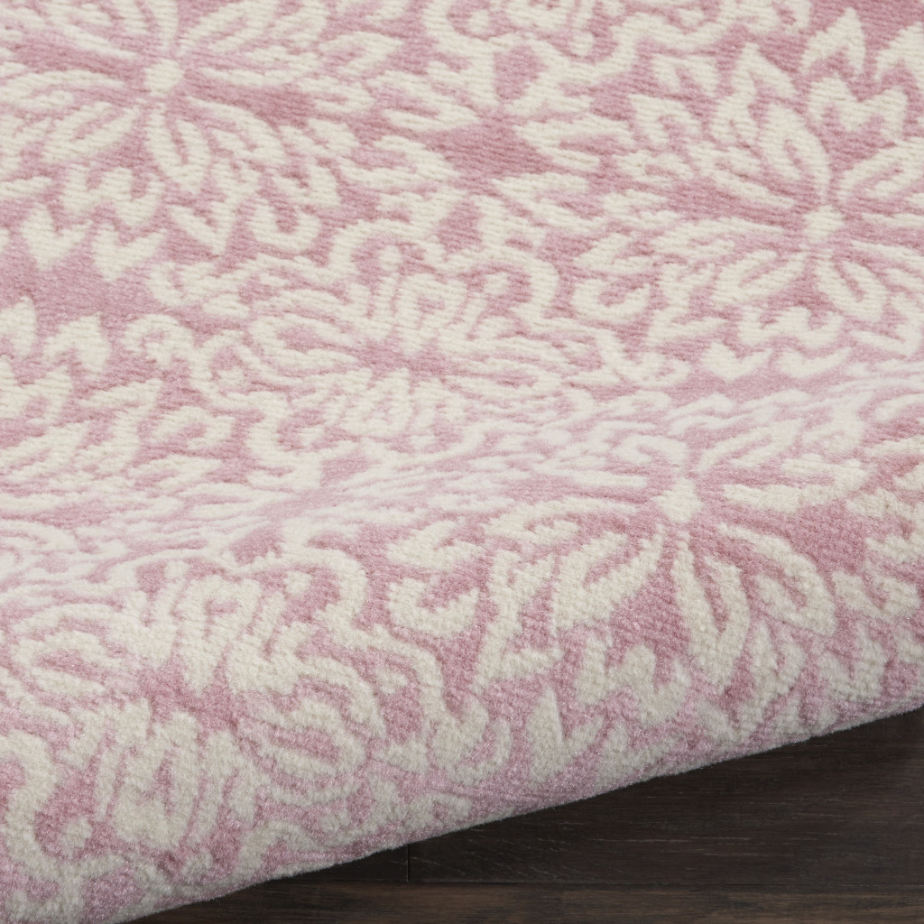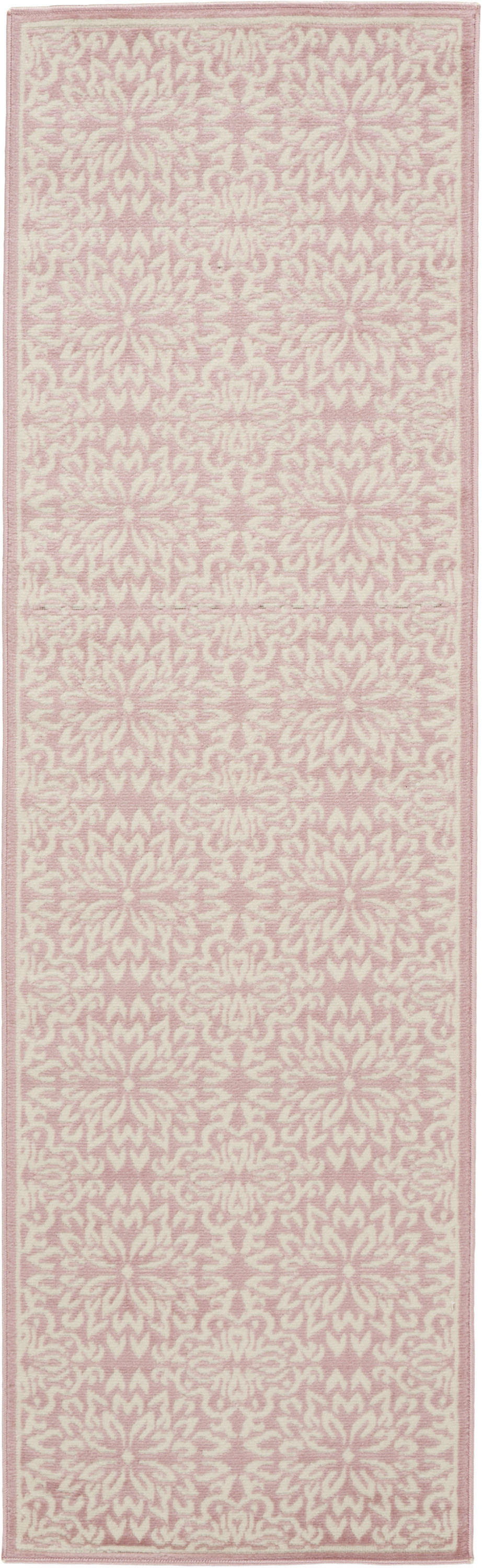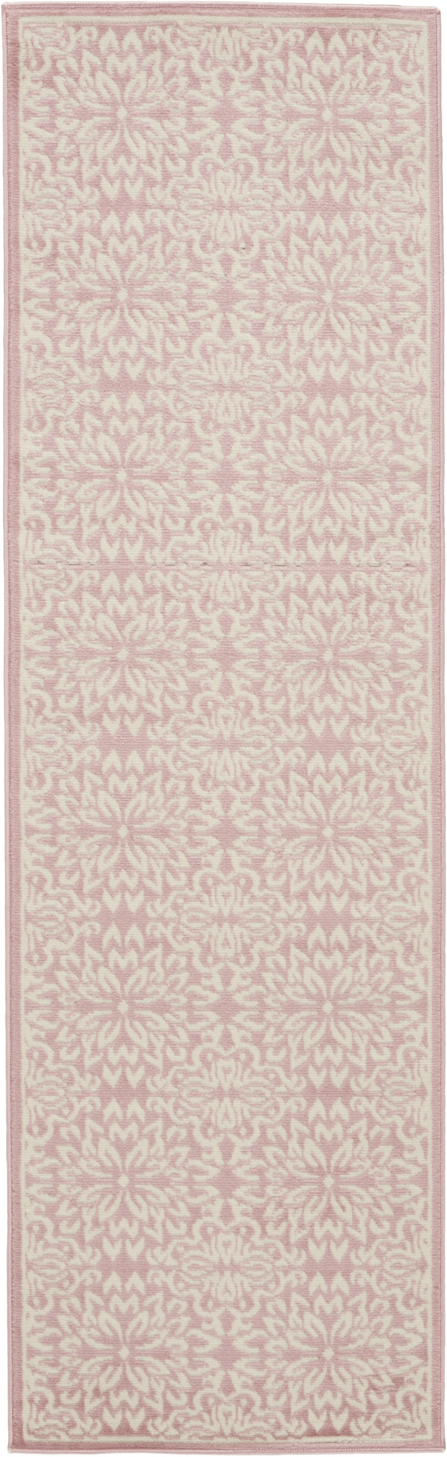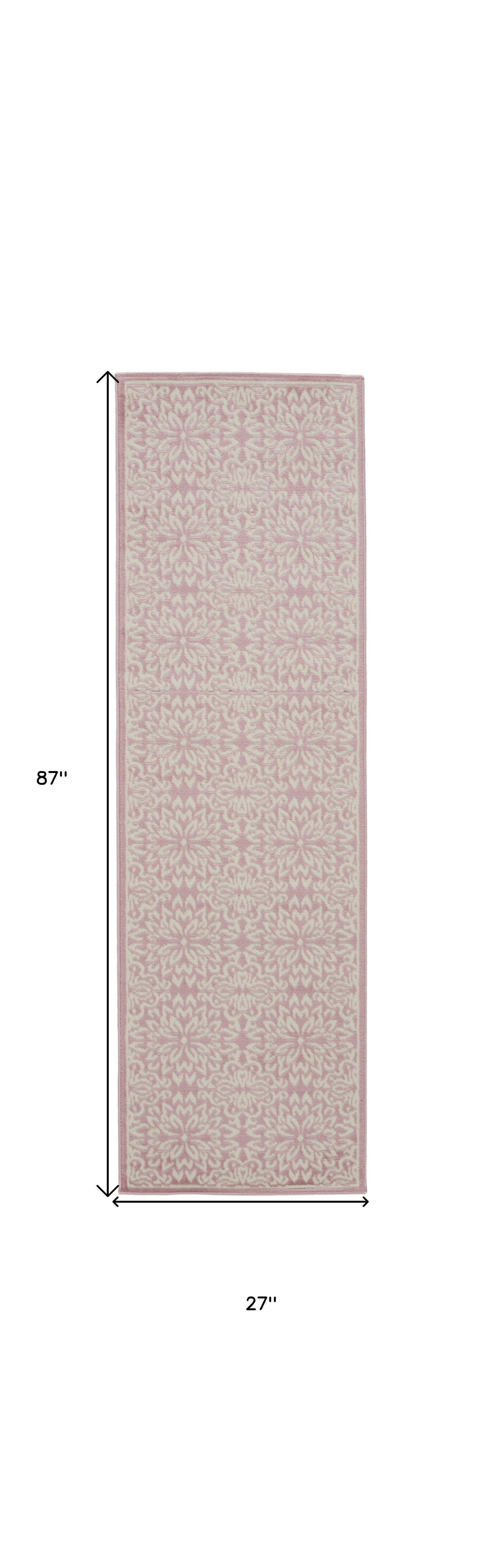 Set an inviting tone in your space with this 7' pink floral power loom runner rug. This runner shaped rug features a floral design in pink to give it visual interest. A classic shape marries with good looking design for your space Made in Turkey, this rug offers high quality combined with good looking designer sensibilities. Place this area rug against a hardwood or tile floor and it will enliven your living space with style and sophistication. .50" H x 27" W x 87" D