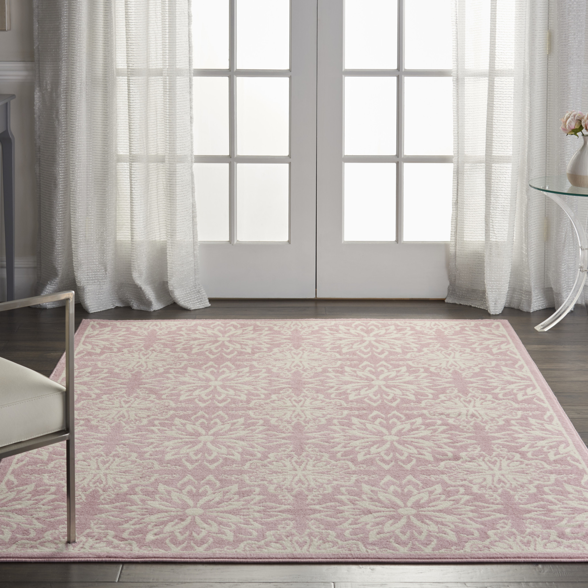 This 5' x 7' pink floral power loom area rug, is a great way to add warmth to a room. This rectangle shaped rug features a floral design in pink to give it visual interest. A classic shape marries with good looking design for your space Made in Turkey, this rug offers high quality combined with good looking designer sensibilities. Area Rugs help to give warmth and sense of home to your space. .50" H x 63" W x 87" D