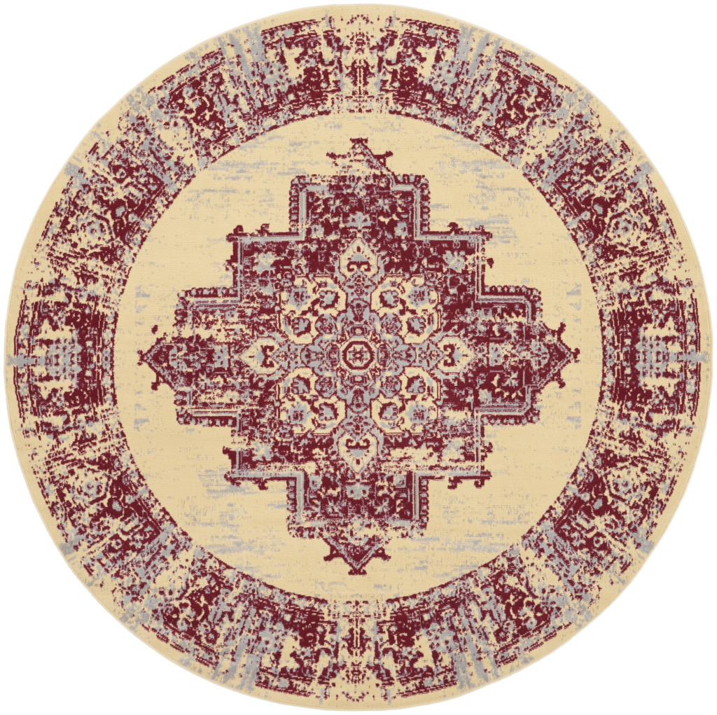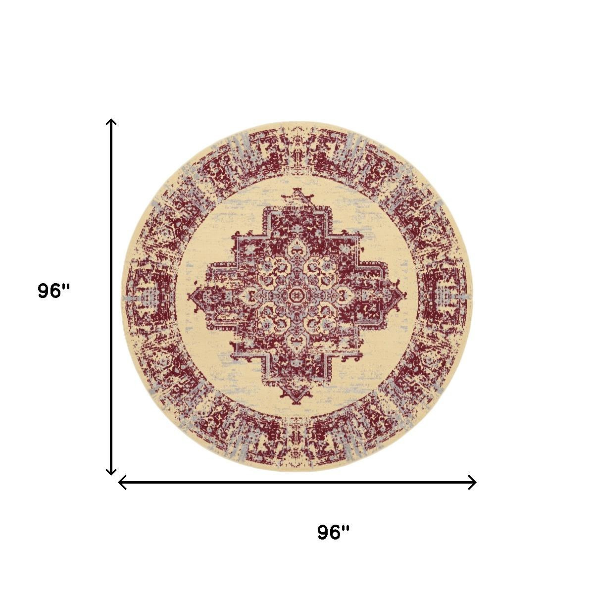 Add some artistry to your room with this 8' cream round damask power loom area rug. This geometric round shaped rug features a damask pattern in cream that combines a good looking print with a unique and updated shape. The mix of shape, color, and design gives this rug refreshing visual interest. This superior Turkish rug represents the highest quality and is built to last. Place this area rug against a hardwood or tile floor and it will enliven your living space with style and sophistication. .50" H x 96.00" W x 96.00" D