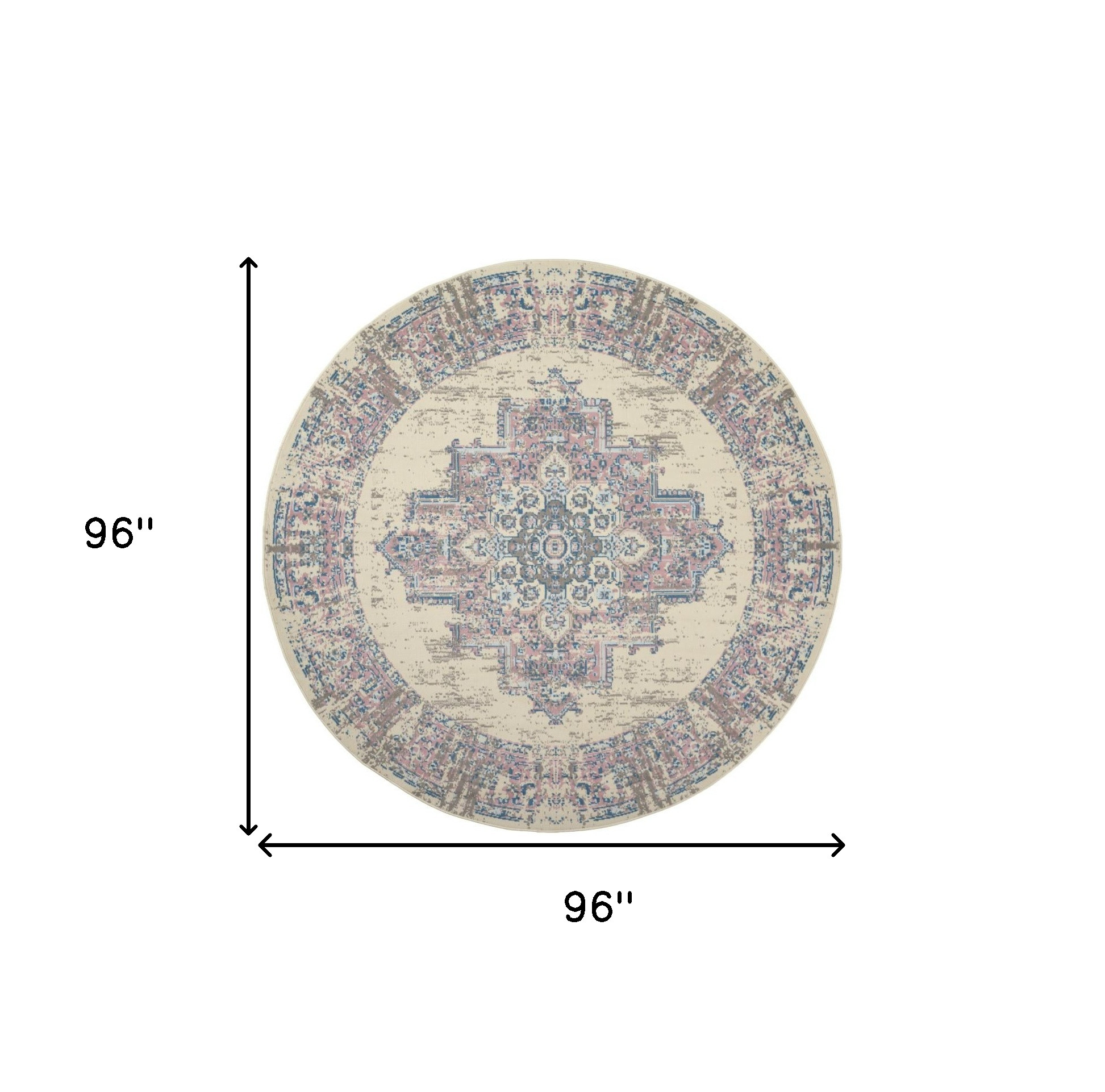 Add some artistry to your room with this 8' pink round damask power loom area rug. This geometric round shaped rug features a damask pattern in pink that combines a good looking print with a unique and updated shape. The mix of shape, color, and design gives this rug refreshing visual interest. Made in Turkey, this rug offers high quality combined with good looking designer sensibilities. Area Rugs help to give warmth and sense of home to your space. .50" H x 96.00" W x 96.00" D