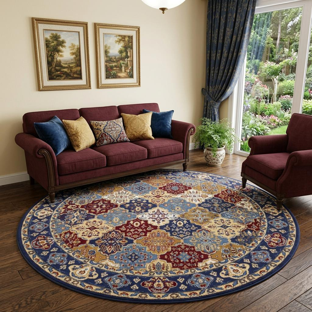 damask power loom area rug, power loom area rug, loom area rug, round damask power loom area, red round damask power loom |