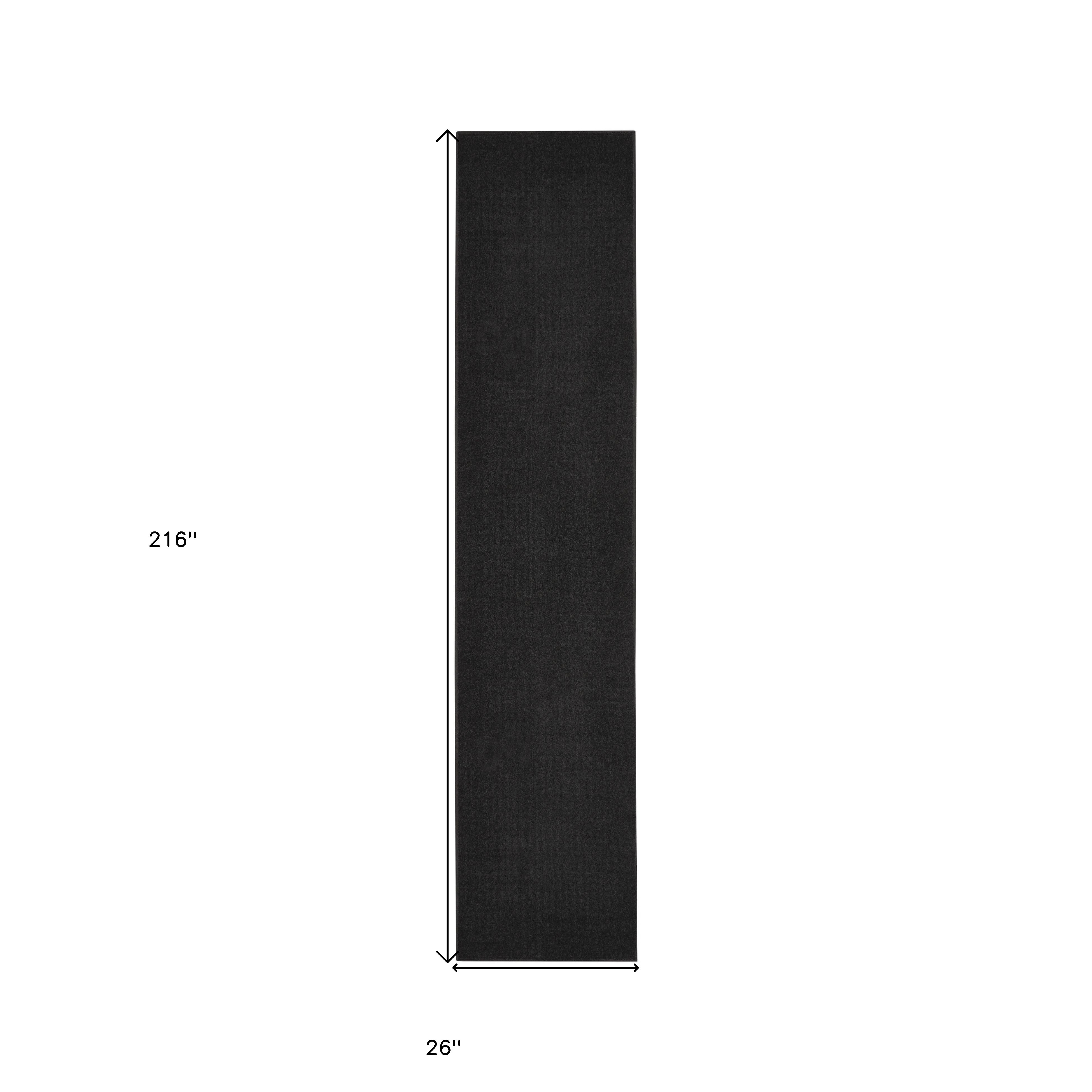 This 18' black power loom runner rug, is a great way to add warmth to a room. This runner shaped rug flaunts a black color that will be a great way to accent your space. Solid colors are versatile and will blend with any existing decor style. The coloration of this rug infuses an updated and modern vibe into your space. This superior Turkish rug represents the highest quality and is built to last. Area Rugs help to give warmth and sense of home to your space. .25" H x 26.00" W x 216.00" D