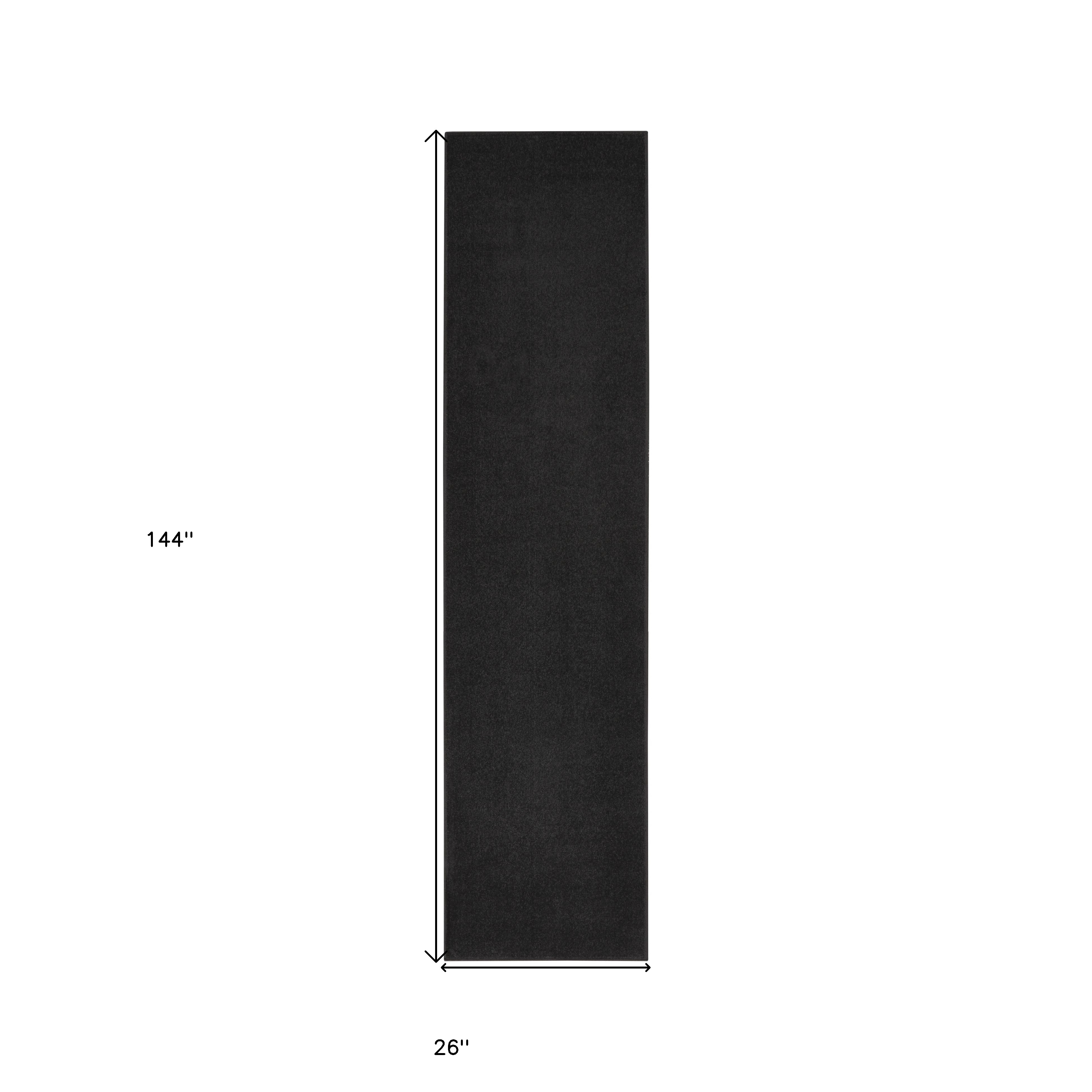 This 12-foot runner black indoor outdoor runner rug, is a great way to add warmth to a room. This runner shaped rug flaunts a black color that will be a great way to accent your space. Solid colors are versatile and will blend with any existing decor style. The coloration of this rug infuses an updated and modern vibe into your space. Place this area rug against a hardwood or tile floor and it will enliven your living space with style and sophistication. 26-inch H x 144-inch W x 0.25-inch D