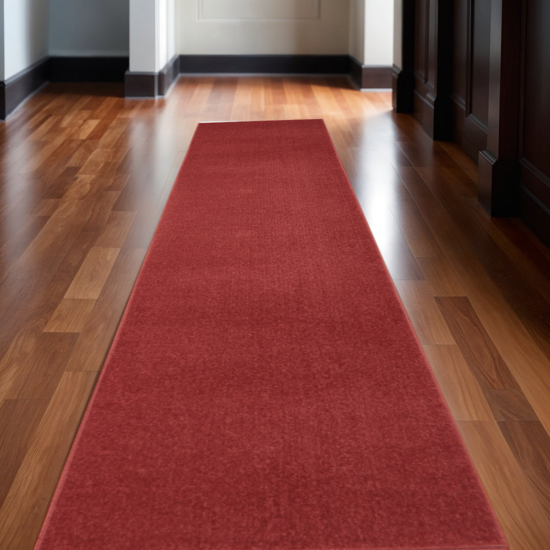 This 14' runner red power loom runner rug, is a great way to add warmth to a room. This runner shaped rug flaunts a red color that will be a great way to accent your space. Solid colors are versatile and will blend with any existing decor style. This superior Turkish rug represents the highest quality and is built to last. Area Rugs help to give warmth and sense of home to your space. .25" H x 26.00" W x 168.00" D
