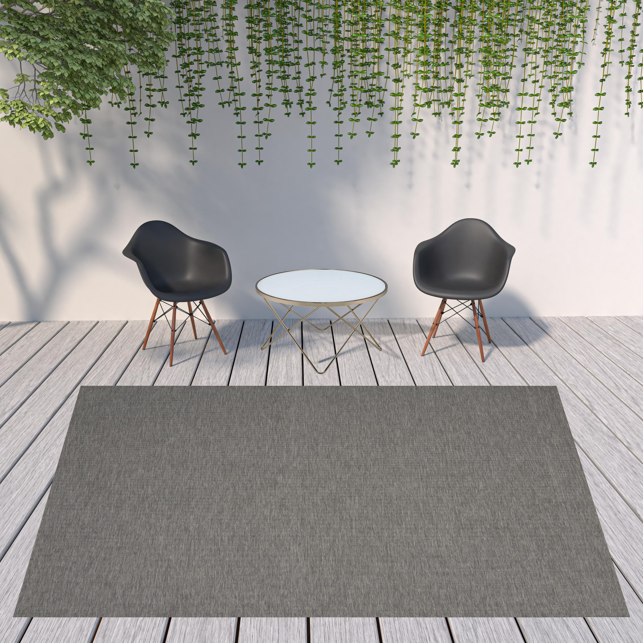 Add great coloration and comfortable texture to your space with this 9-foot x 12-foot charcoal indoor outdoor area rug. This rectangle shaped rug flaunts a charcoal color that will be a great way to accent your space. Solid colors are versatile and will blend with any existing decor style. Area rugs help to give warmth and sense of home to your space. 108-inch H x 144-inch W x 0.25-inch D