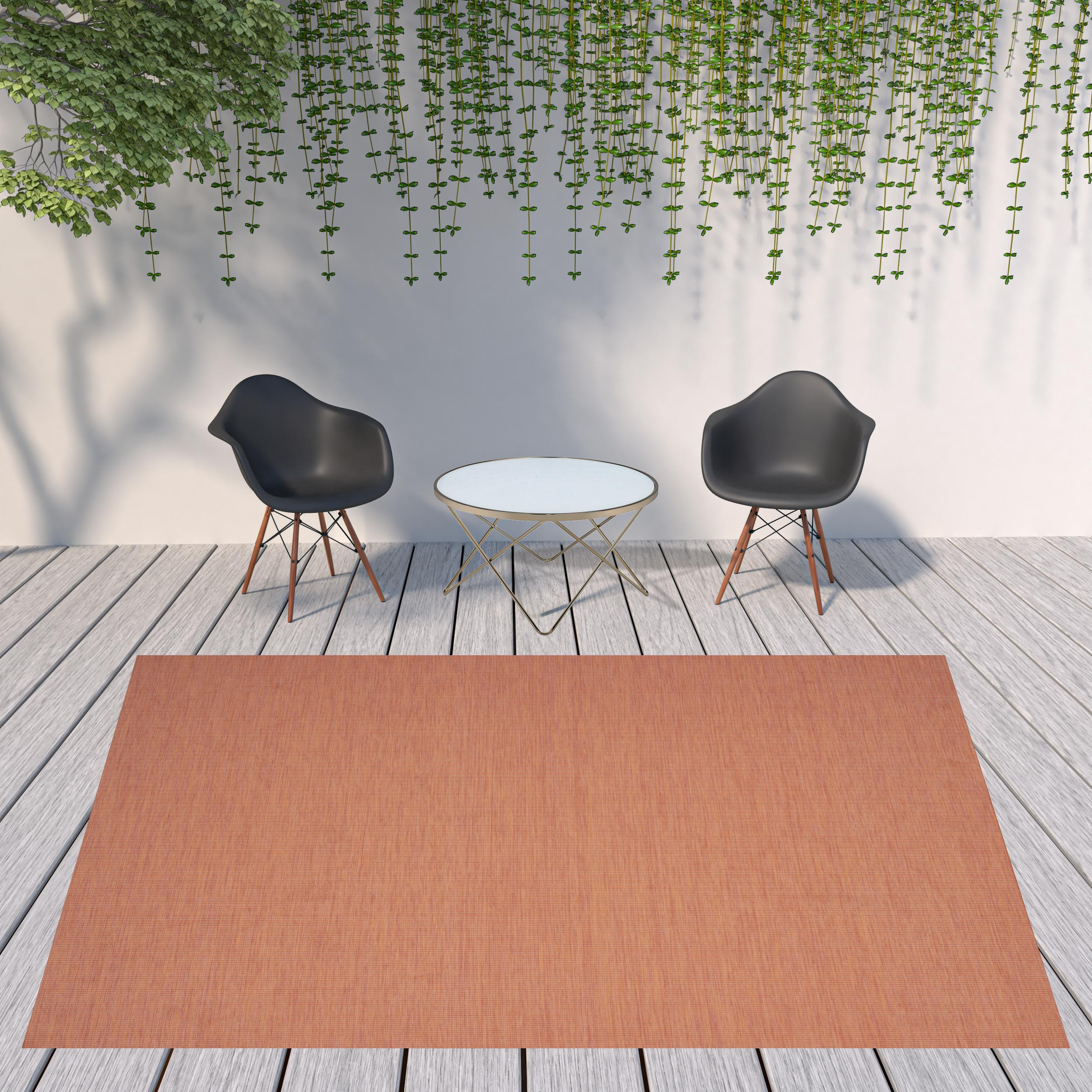 This 9-foot x 12-foot rust indoor outdoor area rug, is a great way to add warmth to a room. This rectangle shaped rug flaunts a rust color that will be a great way to accent your space. Solid colors are versatile and will blend with any existing decor style. Area rugs help to give warmth and sense of home to your space. 108-inch H x 144-inch W x 0.25-inch D