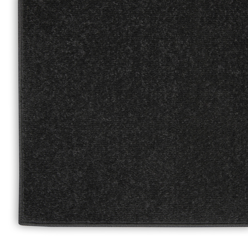 Add some artistry to your room with this 14-foot runner black indoor outdoor runner rug. This runner shaped rug flaunts a black color that will be a great way to accent your space. Solid colors are versatile and will blend with any existing decor style. The coloration of this rug infuses an updated and modern vibe into your space. Area rugs help to give warmth and sense of home to your space. 26-inch H x 168-inch W x 0.25-inch D