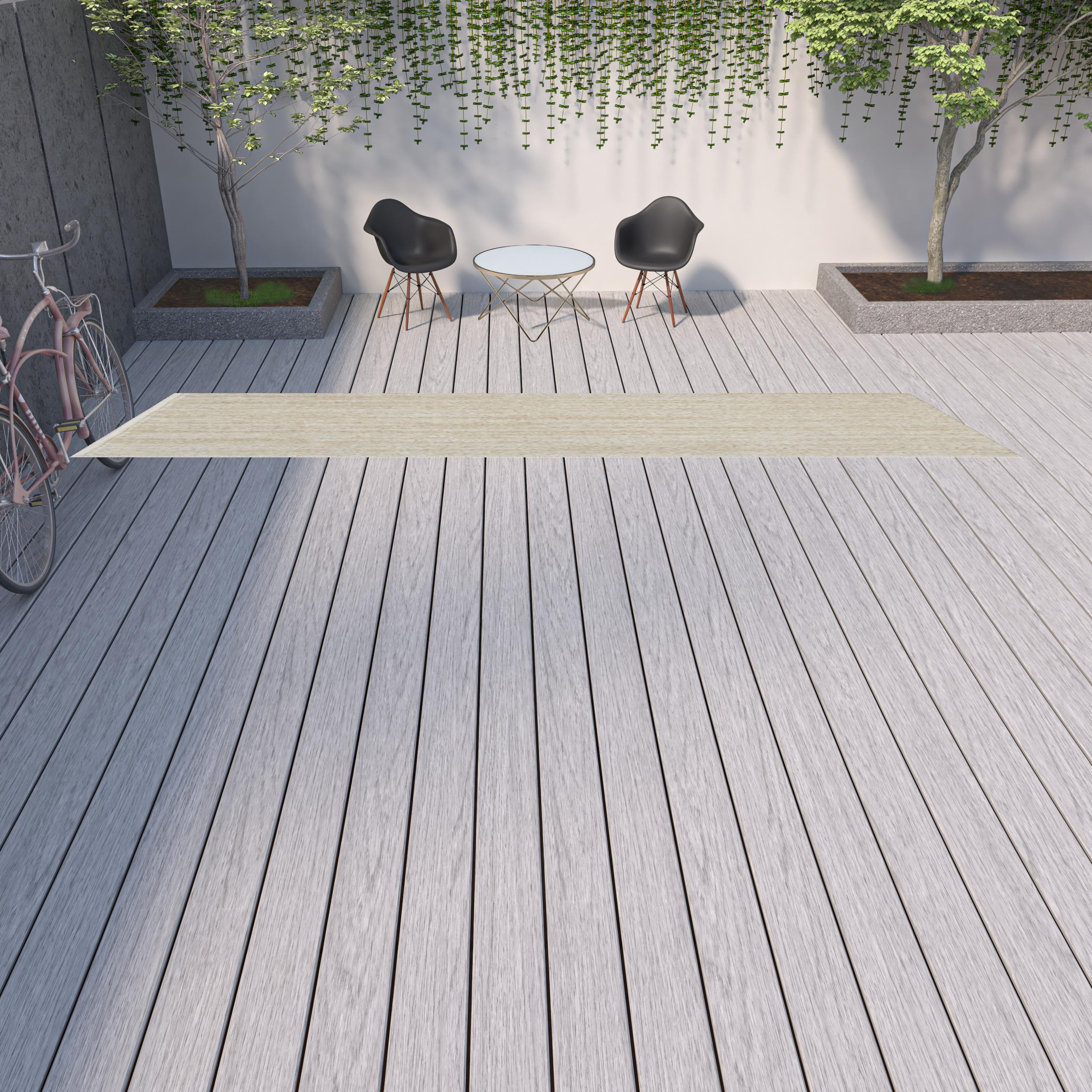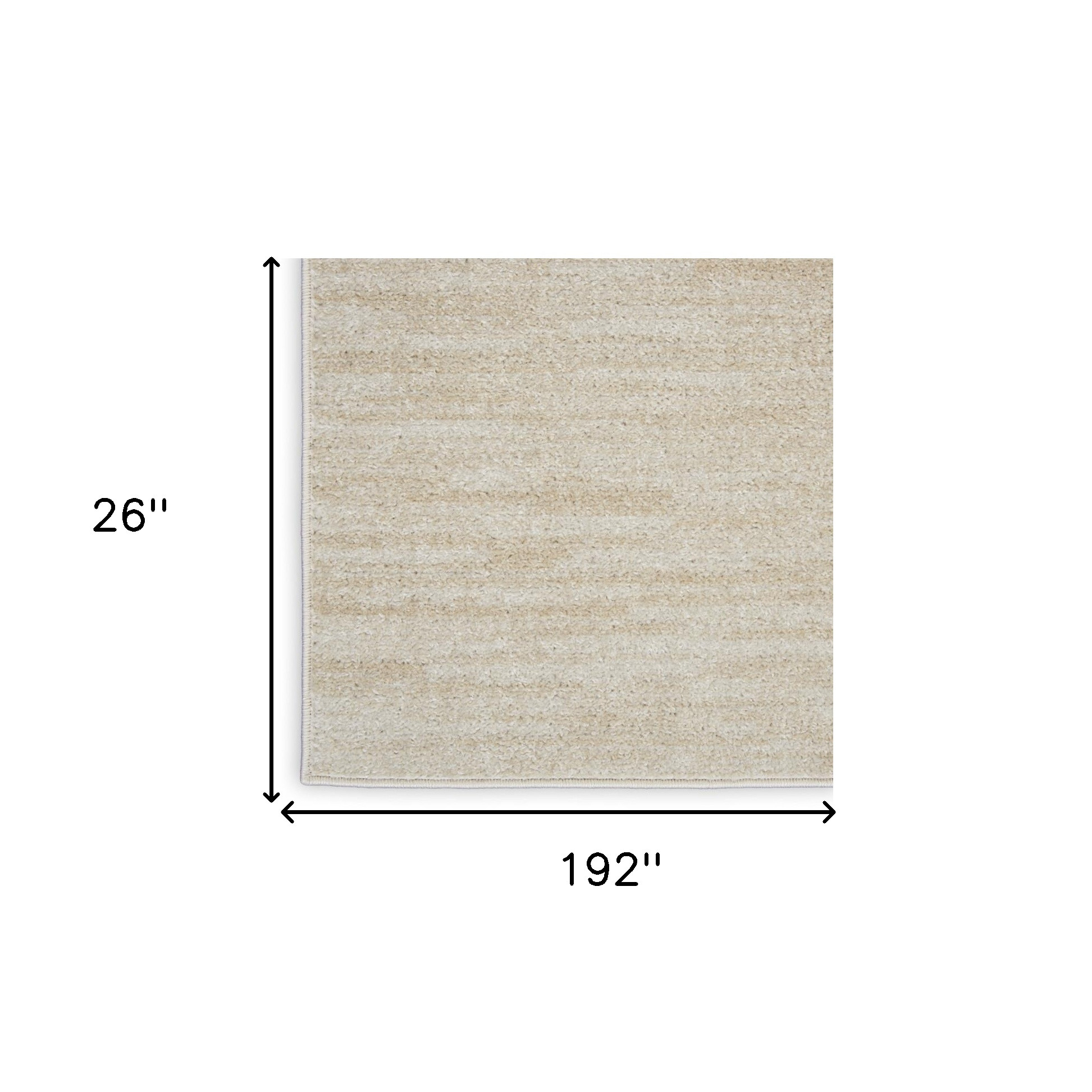 This 16-foot runner beige indoor outdoor runner rug, is a great way to add warmth to a room. This runner shaped rug flaunts a beige color that will be a great way to accent your space. Solid colors are versatile and will blend with any existing decor style. Place this area rug against a hardwood or tile floor and it will enliven your living space with style and sophistication. 26-inch H x 192-inch W x 0.25-inch D
