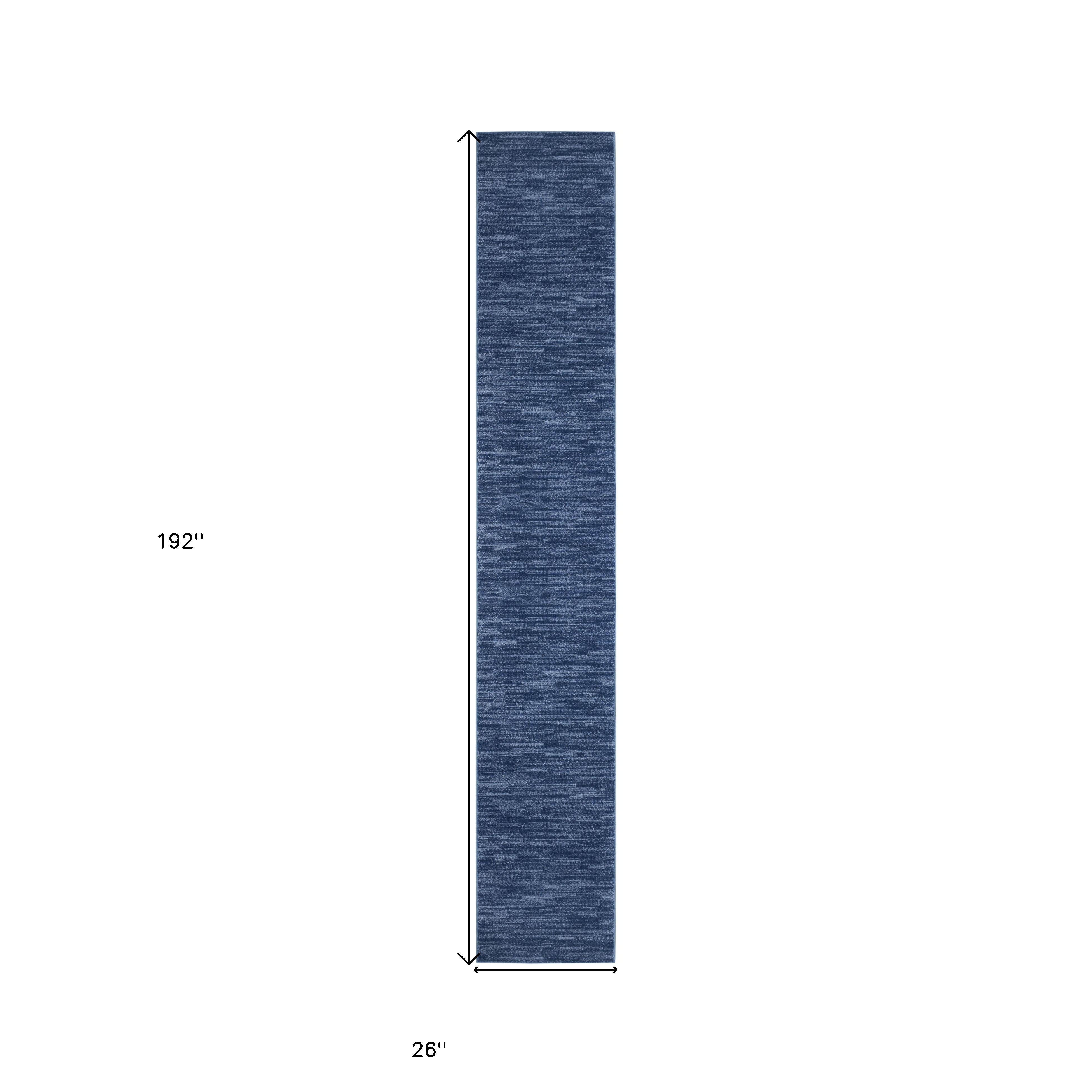 Set an inviting tone in your space with this 16-foot runner navy blue indoor outdoor runner rug. This runner shaped rug flaunts a navy blue color that will be a great way to accent your space. Solid colors are versatile and will blend with any existing decor style. Place this area rug against a hardwood or tile floor and it will enliven your living space with style and sophistication. 26-inch H x 192-inch W x 0.25-inch D