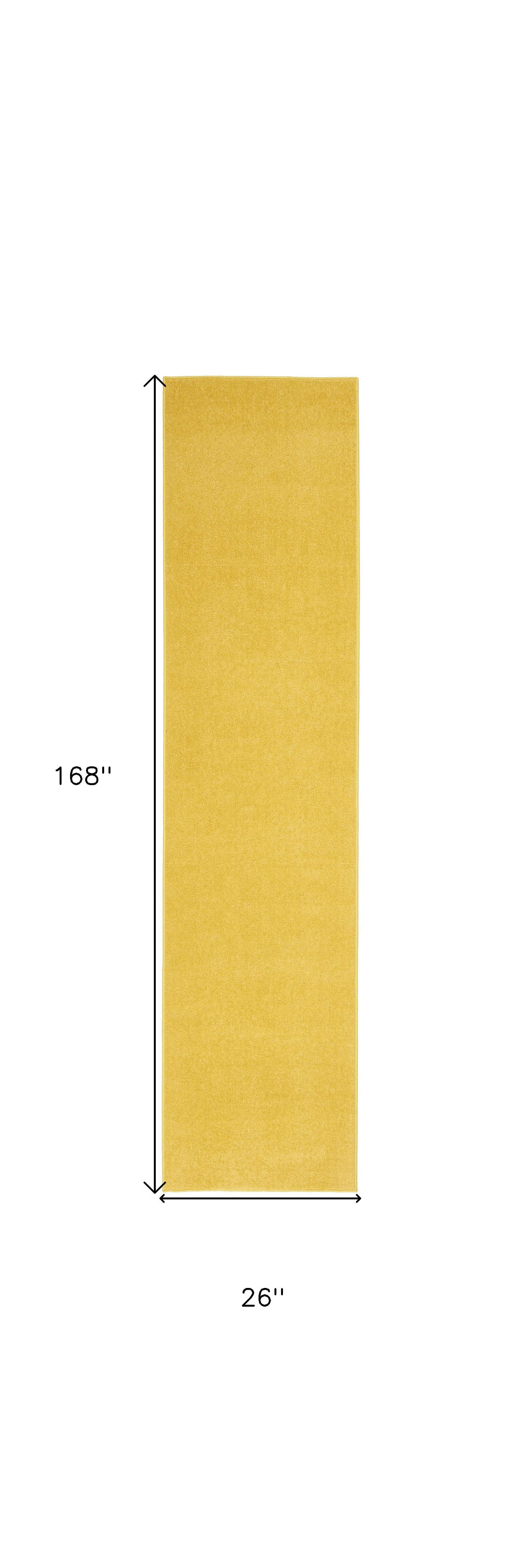 Add great coloration and comfortable texture to your space with this 14' runner yellow power loom runner rug. This runner shaped rug flaunts a yellow color that will be a great way to accent your space. Solid colors are versatile and will blend with any existing decor style. Made in Turkey, this rug offers high quality combined with good looking designer sensibilities. Area Rugs help to give warmth and sense of home to your space. .25" H x 26.00" W x 168.00" D