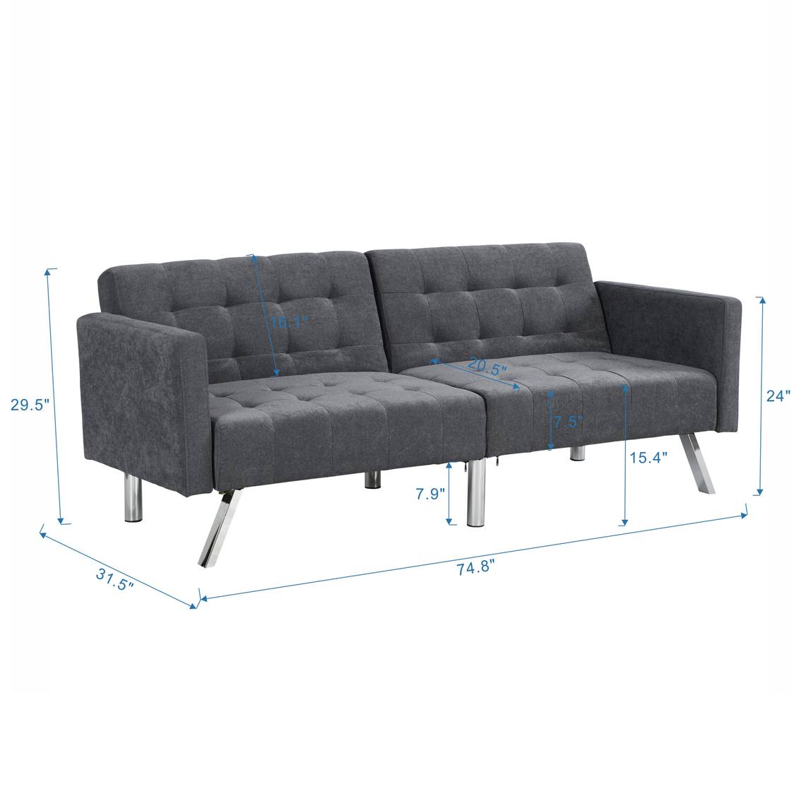 Add an air of fashion to your space with this fabulous 75-inch dark gray linen sleeper sofa with silver legs. Fixed arms offer a comfy place to rest. Silver metal legs effortlessly elevate the room and add a touch of contemporary design. Built to last, this sofa will be a great centerpiece for your room. 29.5-inch H x 74.8-inch W x 31.5-inch D