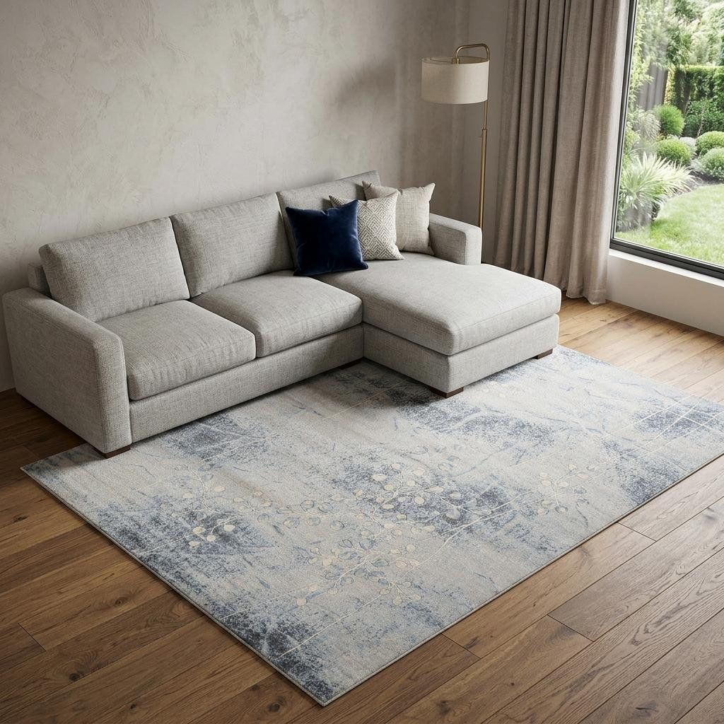 This 10-foot x 13-foot blue and silver floral power loom area rug, is a great way to add warmth to a room. This rectangle shaped rug features a floral design in blue and silver to give it visual interest. A classic shape marries with good looking design for your space place this area rug against a hardwood or tile floor and it will enliven your living space with style and sophistication. 114-inch H x 156-inch W x 0.5-inch D