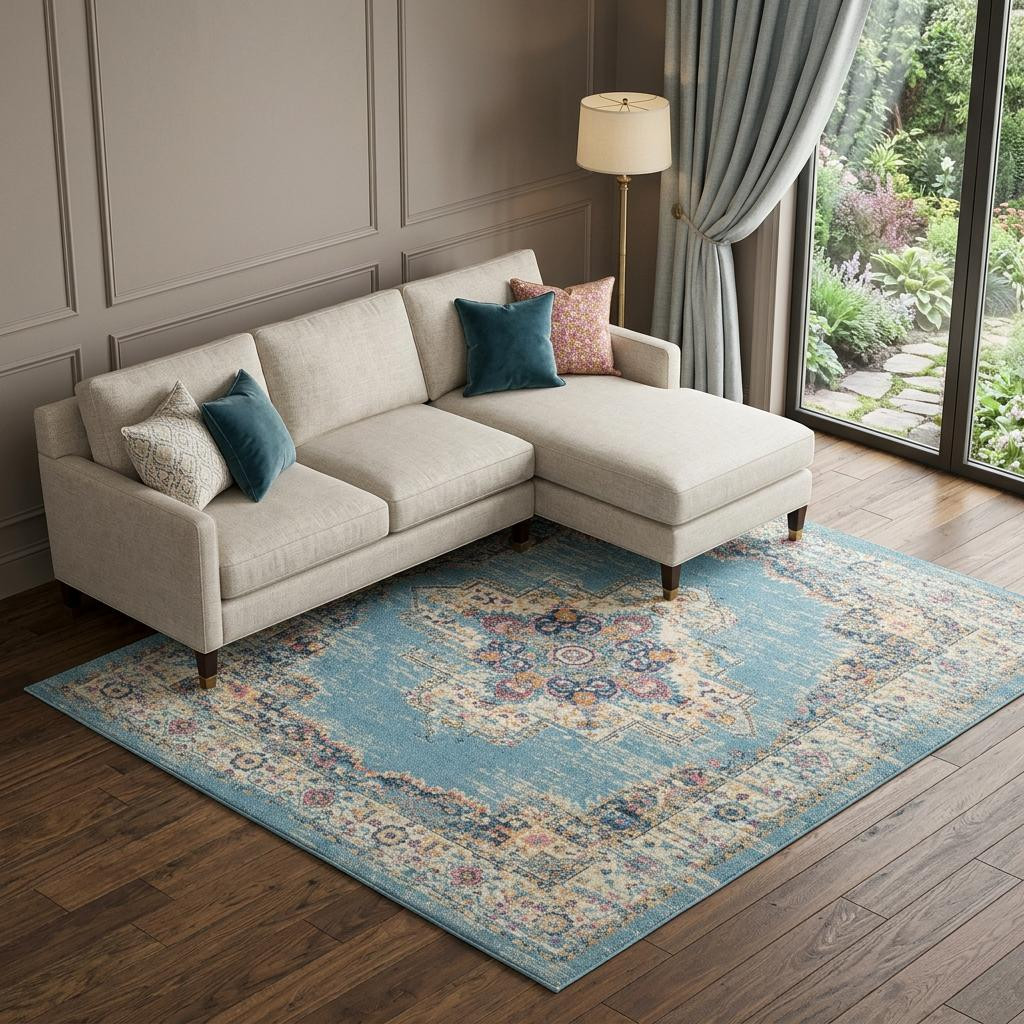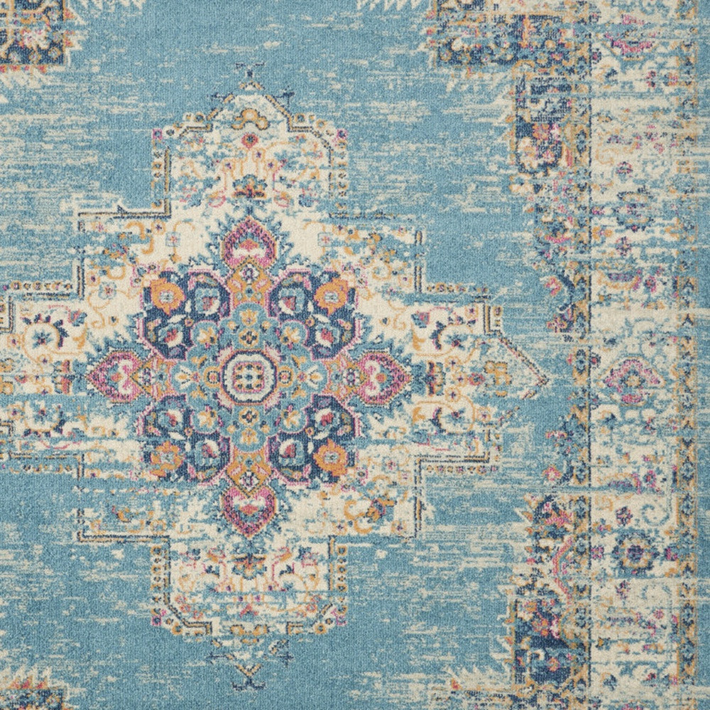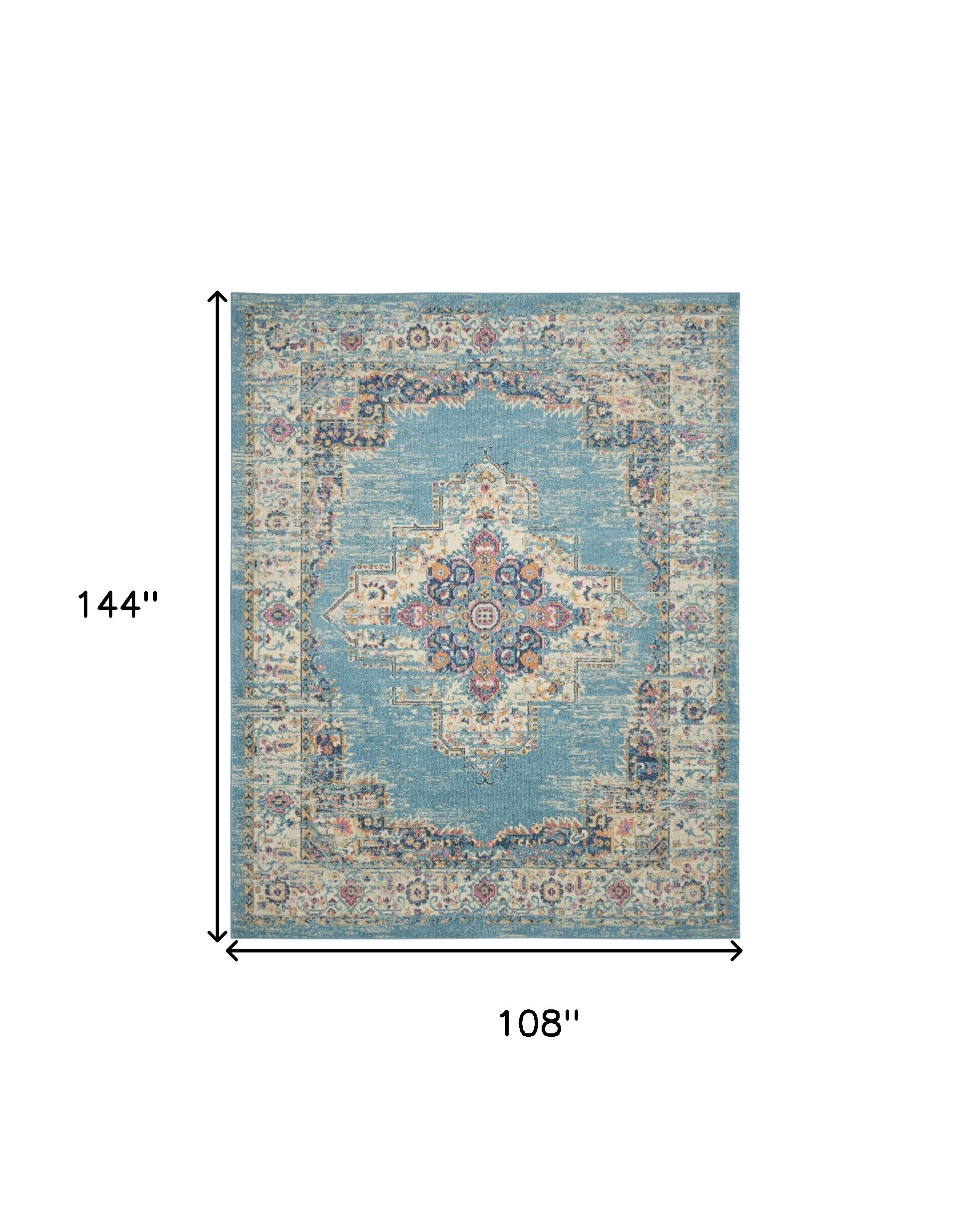 Add great coloration and comfortable texture to your space with this 9' x 12' light blue floral power loom area rug. This rectangle shaped rug features a floral design in light blue to give it visual interest. A classic shape marries with good looking design for your space This superior Turkish rug represents the highest quality and is built to last. Place this area rug against a hardwood or tile floor and it will enliven your living space with style and sophistication. .50" H x 108.00" W x 144.00" D