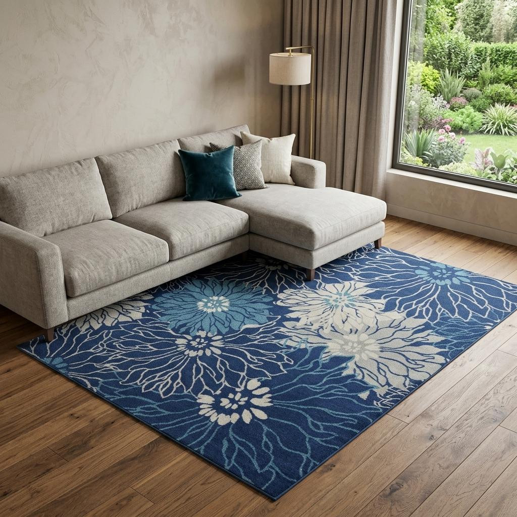 Add some artistry to your room with this 9-foot x 12-foot blue and ivory floral power loom area rug. This rectangle shaped rug features a floral design in blue and ivory to give it visual interest. A classic shape marries with good looking design for your space area rugs help to give warmth and sense of home to your space. 108-inch H x 144-inch W x 0.5-inch D