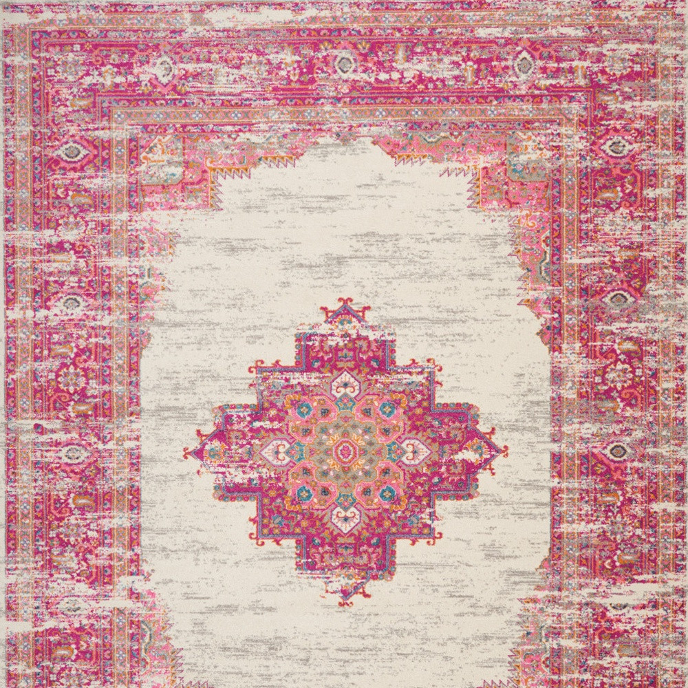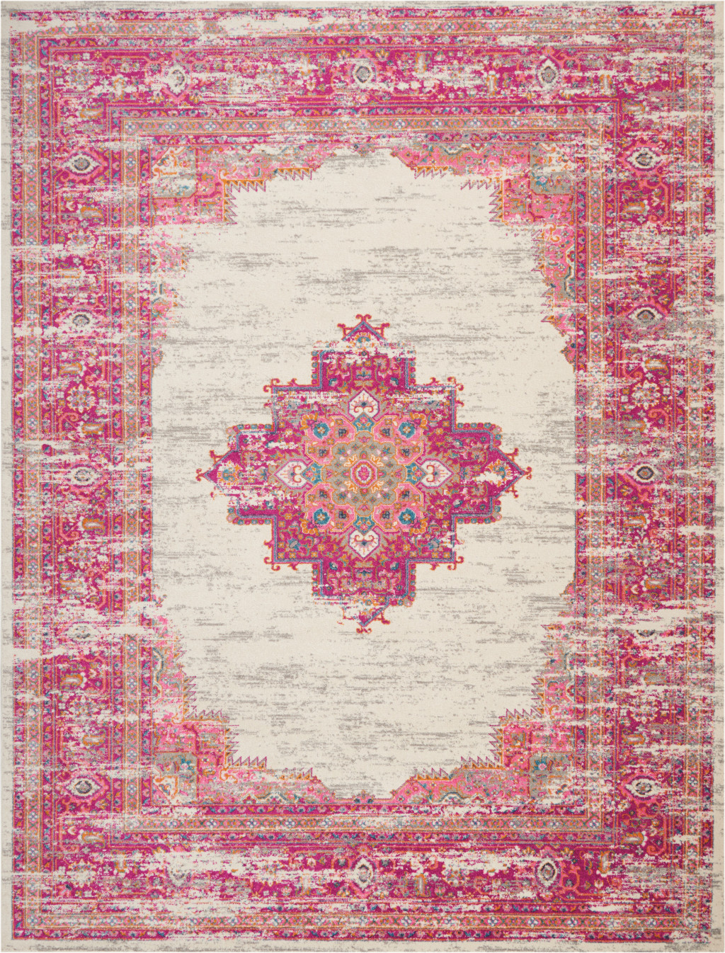 This 9' x 12' pink floral power loom area rug, is a great way to add warmth to a room. This rectangle shaped rug features a floral design in pink to give it visual interest. A classic shape marries with good looking design for your space Made in Turkey, this rug offers high quality combined with good looking designer sensibilities. Area Rugs help to give warmth and sense of home to your space. .50" H x 108" W x 144" D