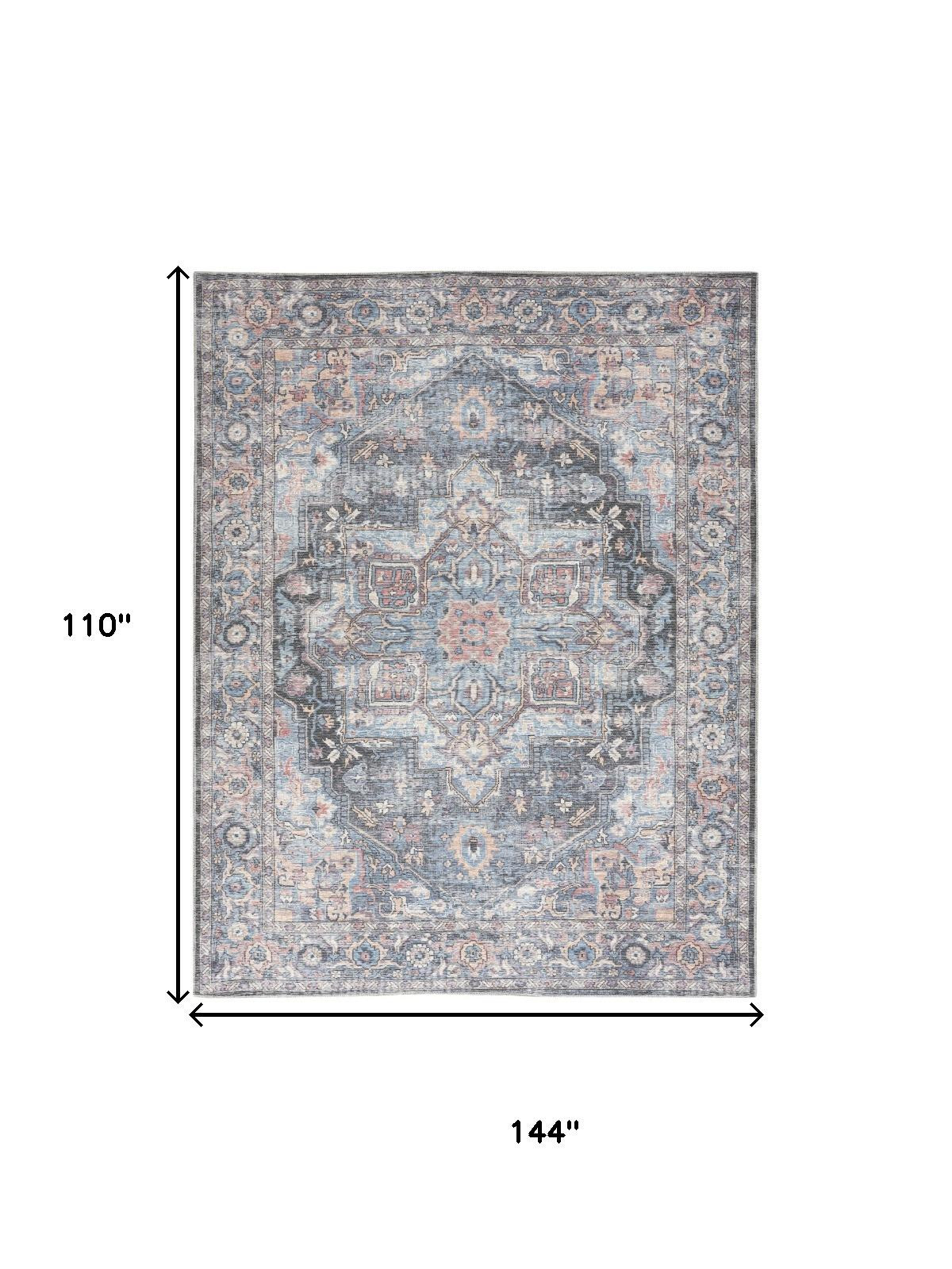 Set an inviting tone in your space with this 9' x 12' blue and pink floral power loom distressed washable area rug. This rectangle shaped rug features a floral design in blue and pink to give it visual interest. A classic shape marries with good looking design for your space Made in Turkey, this rug offers high quality combined with good looking designer sensibilities. Area Rugs help to give warmth and sense of home to your space. .28" H x 110.00" W x 144.00" D
