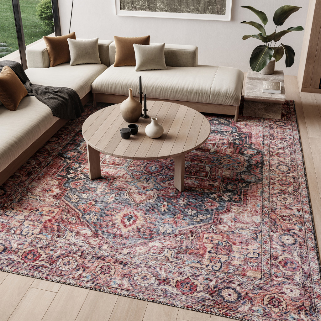 Add some artistry to your room with this 9' x 12' red floral power loom distressed washable area rug. This rectangle shaped rug features a floral design in red to give it visual interest. A classic shape marries with good looking design for your space This superior Turkish rug represents the highest quality and is built to last. Area Rugs help to give warmth and sense of home to your space. .28" H x 110.00" W x 144.00" D