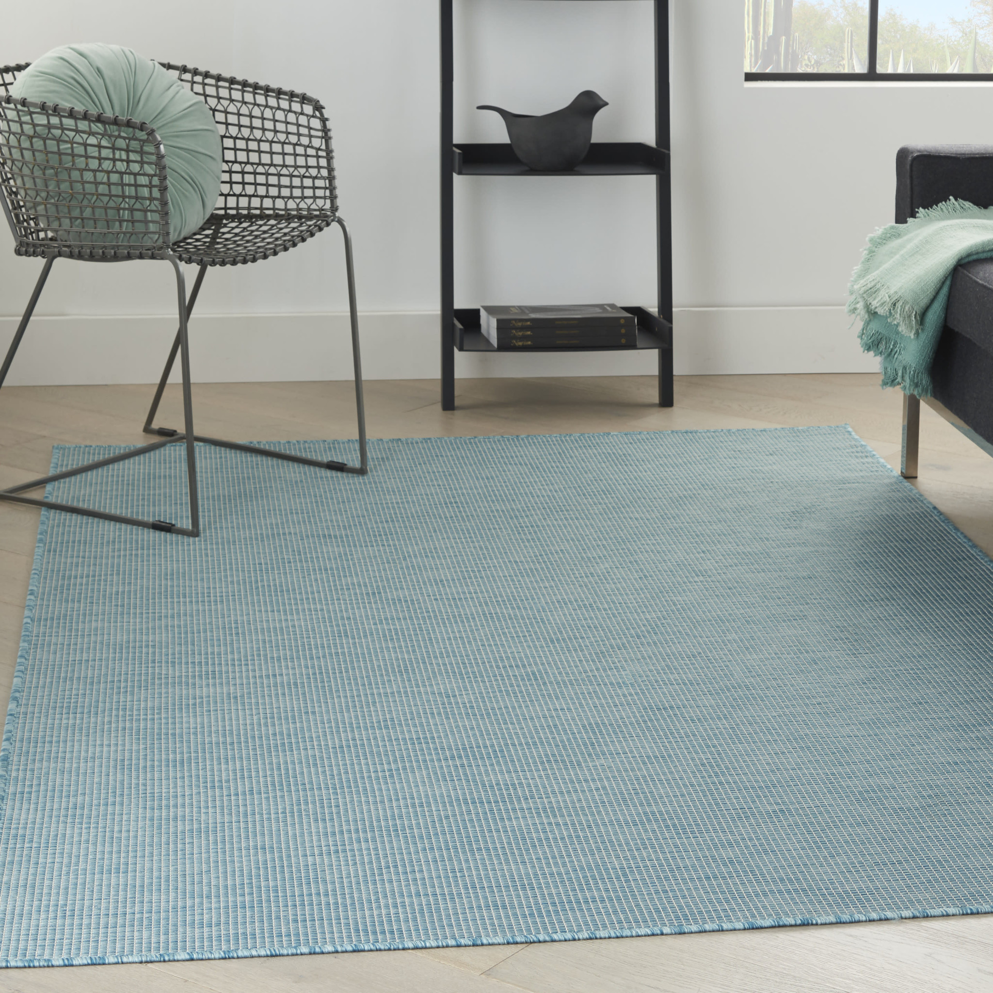 Add great coloration and comfortable texture to your space with this 5-foot x 7-foot aqua indoor outdoor area rug. This rectangle shaped rug flaunts a aqua color that will be a great way to accent your space. Solid colors are versatile and will blend with any existing decor style. Versatile in use, durable, and easy to maintain, this rug is an ideal solution to add a decorative and inviting touch to your indoor or outdoor space. 60-inch h x 84-inch w x 0.25-inch d.