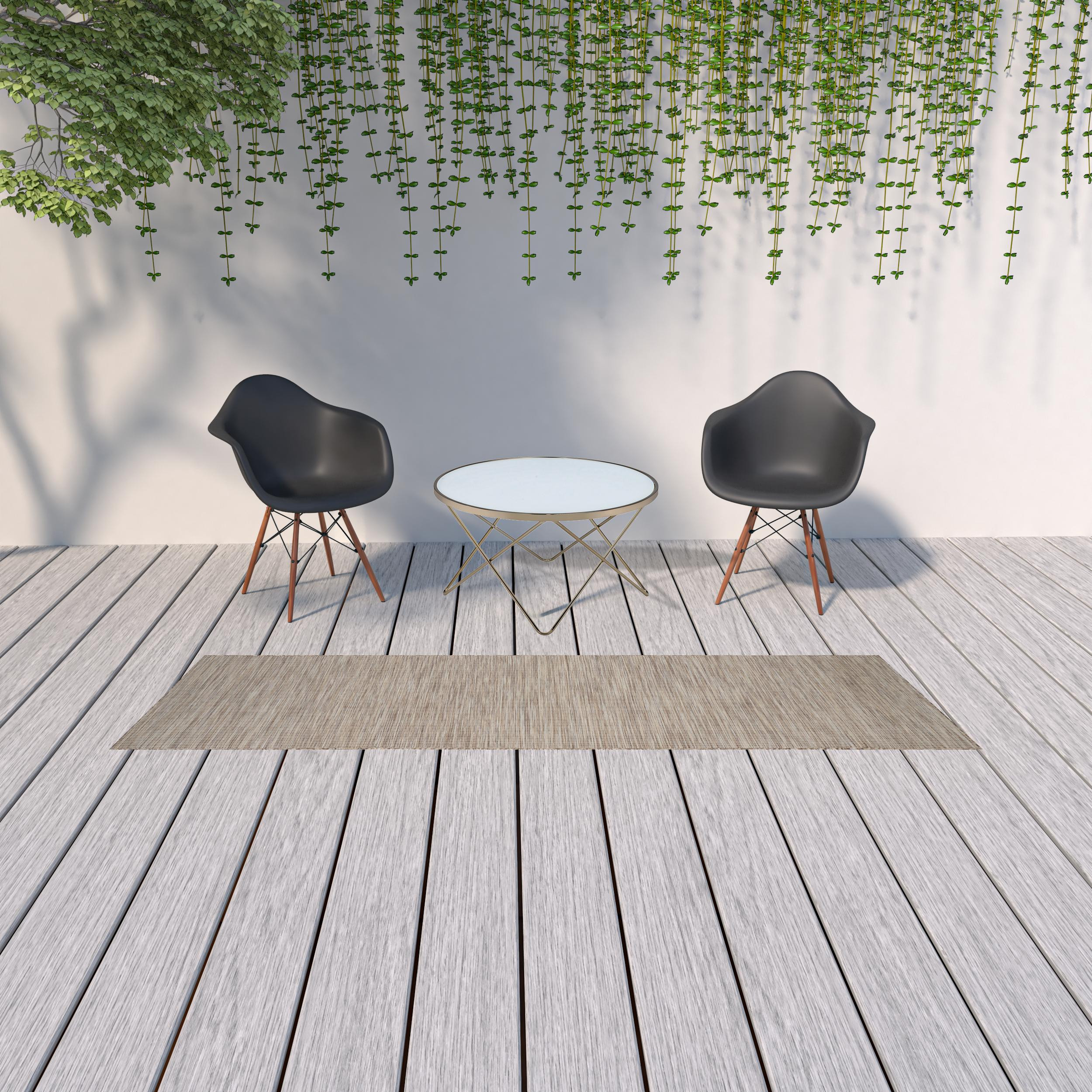 Set an inviting tone in your space with this 10-foot runner beige indoor outdoor runner rug. This runner shaped rug flaunts a beige color that will be a great way to accent your space. Solid colors are versatile and will blend with any existing decor style. Place this area rug against a hardwood or tile floor and it will enliven your living space with style and sophistication. 26-inch H x 120-inch W x 0.25-inch D
