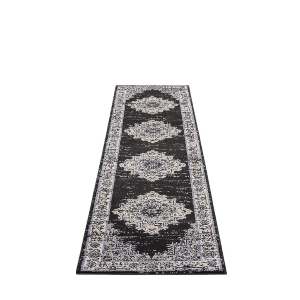loom distressed runner rug, power loom distressed runner rug, distressed runner rug, black ivory floral power loom, floral power loom distressed runner |