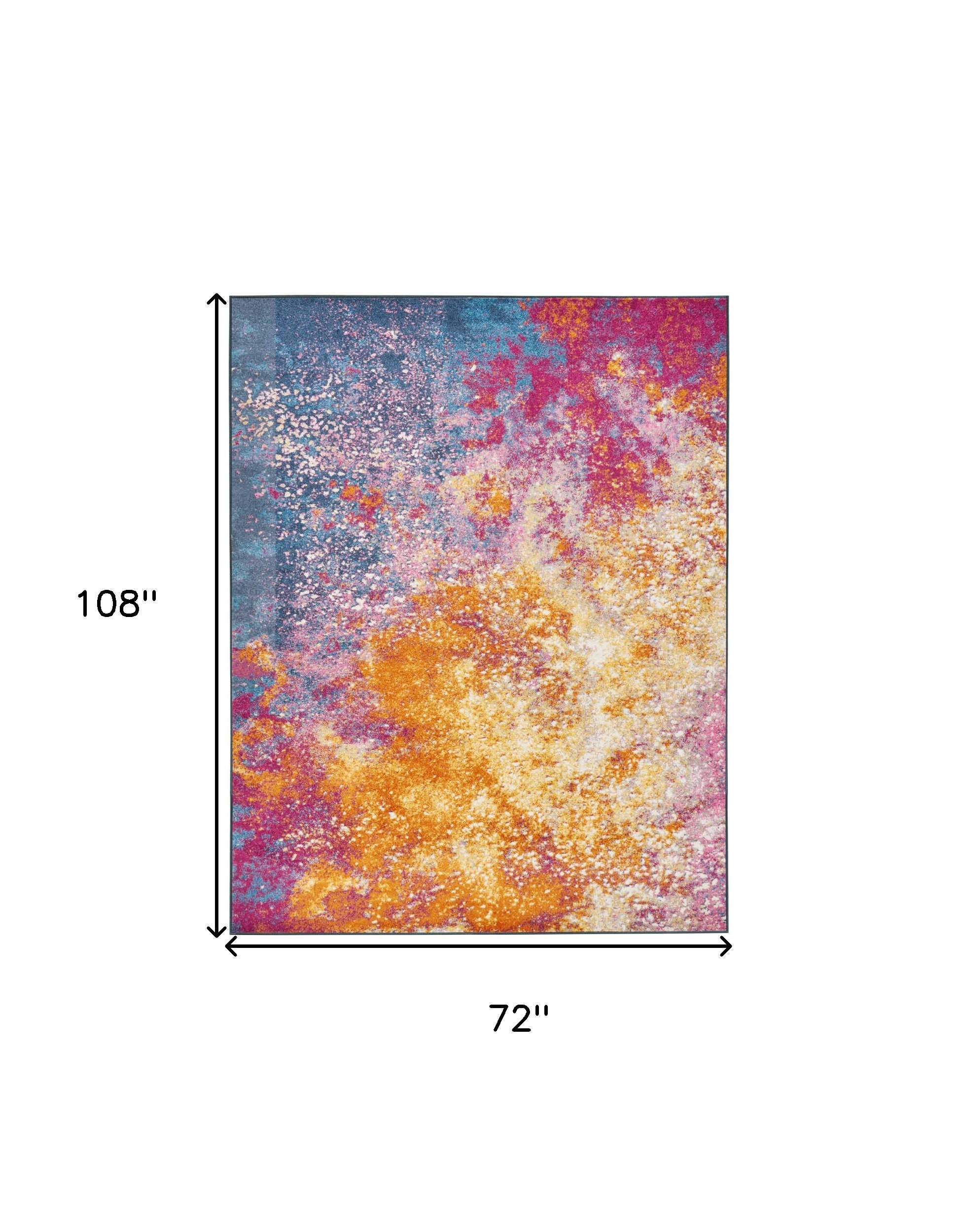 Add some artistry to your room with this 6' x 9' blue abstract power loom area rug. This rectangle shaped rug features a abstract design in blue to give it visual interest. A classic shape marries with good looking design for your space Made in Turkey, this rug offers high quality combined with good looking designer sensibilities. Area Rugs help to give warmth and sense of home to your space. .50" H x 72.00" W x 108.00" D