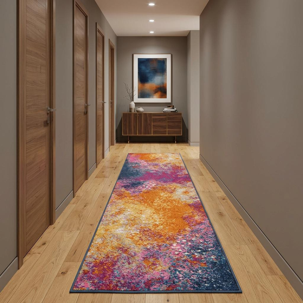 This 14-foot blue abstract runner rug, is a great way to add warmth to a room. Built to last, this rug crafted from polypropylene fibers is known for its durability and long lasting appeal. Rugs are a great way to showcase your style, hide imperfections, warm your home and reduce noise. This rectangular shaped rug features a abstract design that will add a functional and decorative accent to your space. This contemporary style runner makes a great accent for the hallway, in front of cabinets, in the laundry room, or any other space you need a narrow and long rug. 26-inch h x 168-inch w x 0.5-inch d.