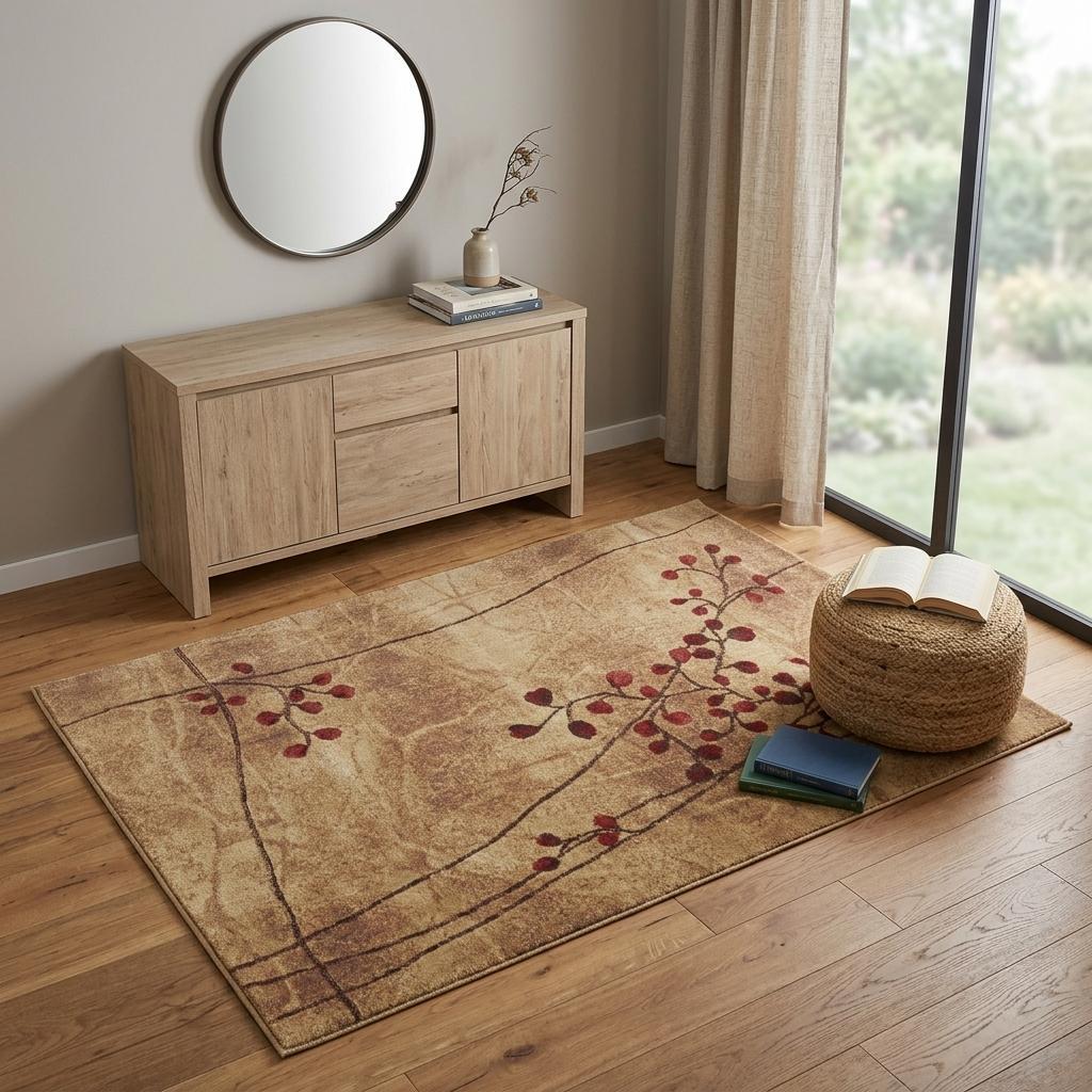 Add great coloration and comfortable texture to your space with this 4' x 6' brown floral power loom area rug. This rectangle shaped rug features a floral design in brown to give it visual interest. A classic shape marries with good looking design for your space Area Rugs help to give warmth and sense of home to your space. .50" H x 42" W x 66" D