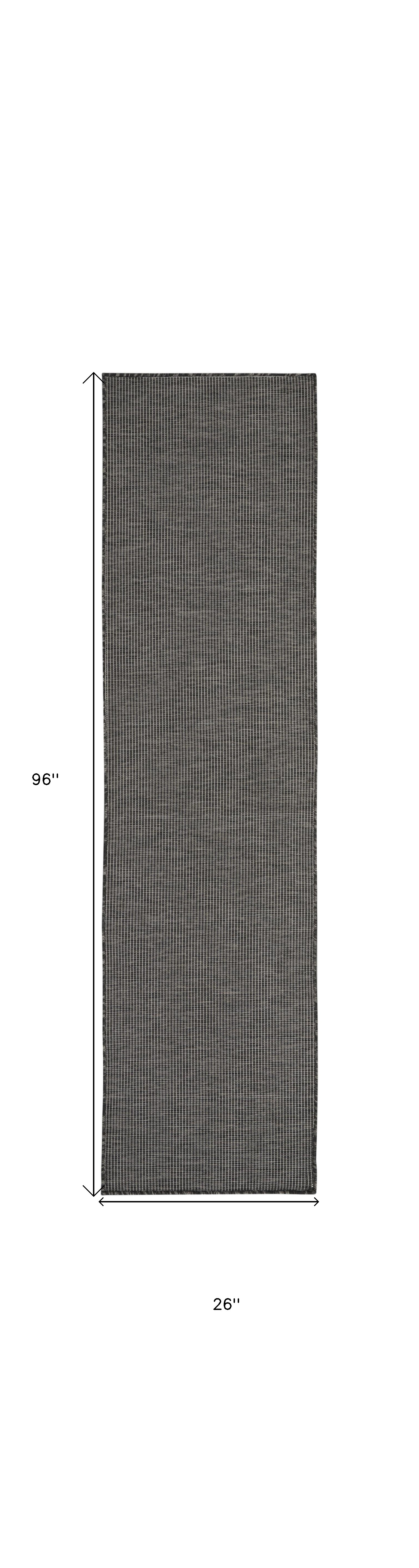 Add great coloration and comfortable texture to your space with this 8-foot charcoal indoor outdoor runner rug. Versatile in use, durable, and easy to maintain, this rug is an ideal solution to add a decorative and inviting touch to your indoor or outdoor space. Crafted with machine-made precision, this runner features a sleek design that complements any setting. Its sophisticated charcoal color enhances your decor while offering a foundation for cozy gatherings and outdoor relaxation. 26-inch h x 96-inch w x 0.25-inch d.