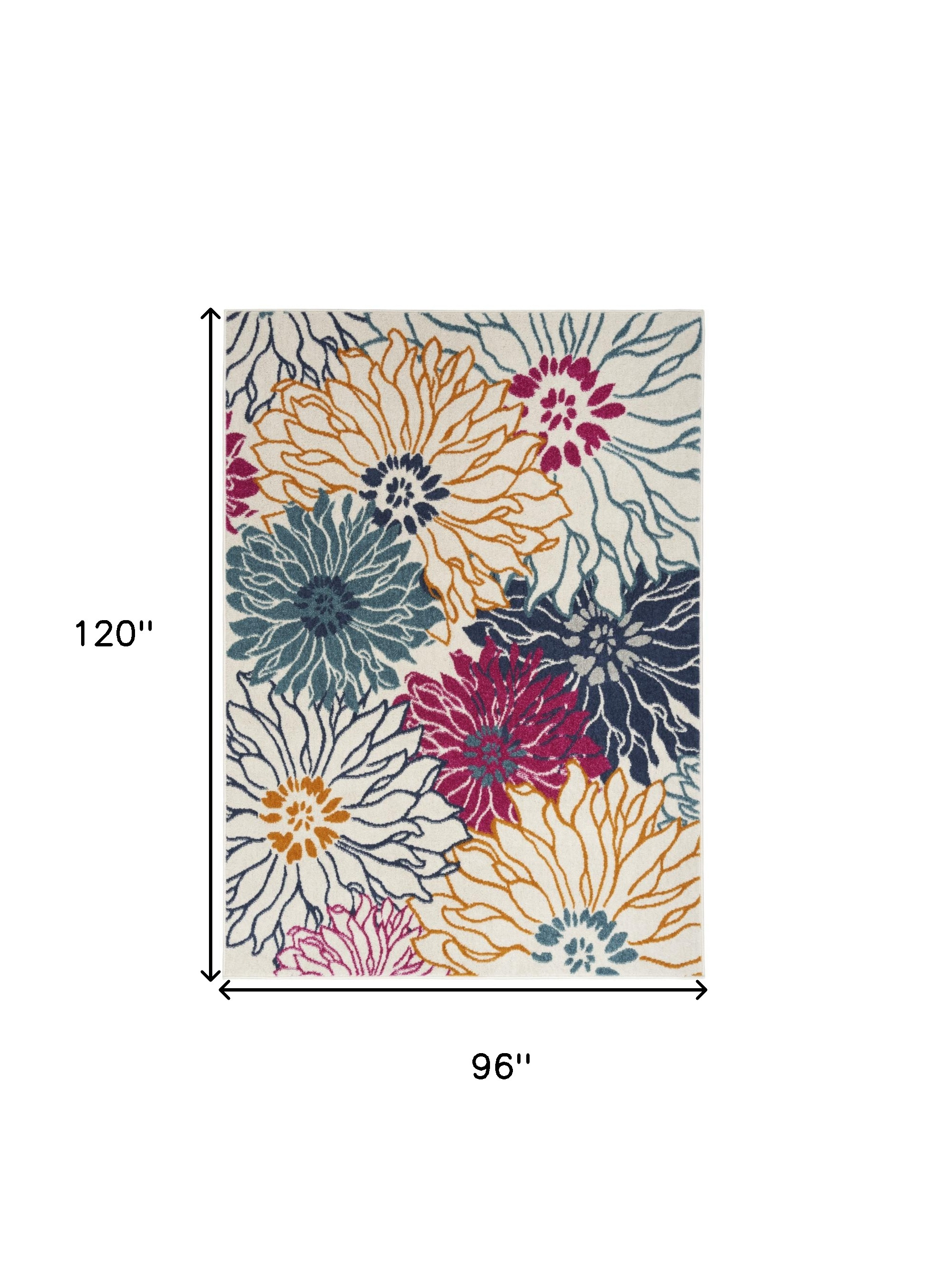 This 8' x 10' cream floral power loom area rug, is a great way to add warmth to a room. This rectangle shaped rug features a floral design in cream to give it visual interest. A classic shape marries with good looking design for your space This superior Turkish rug represents the highest quality and is built to last. Area Rugs help to give warmth and sense of home to your space. .50" H x 96.00" W x 120.00" D