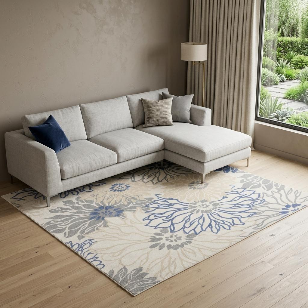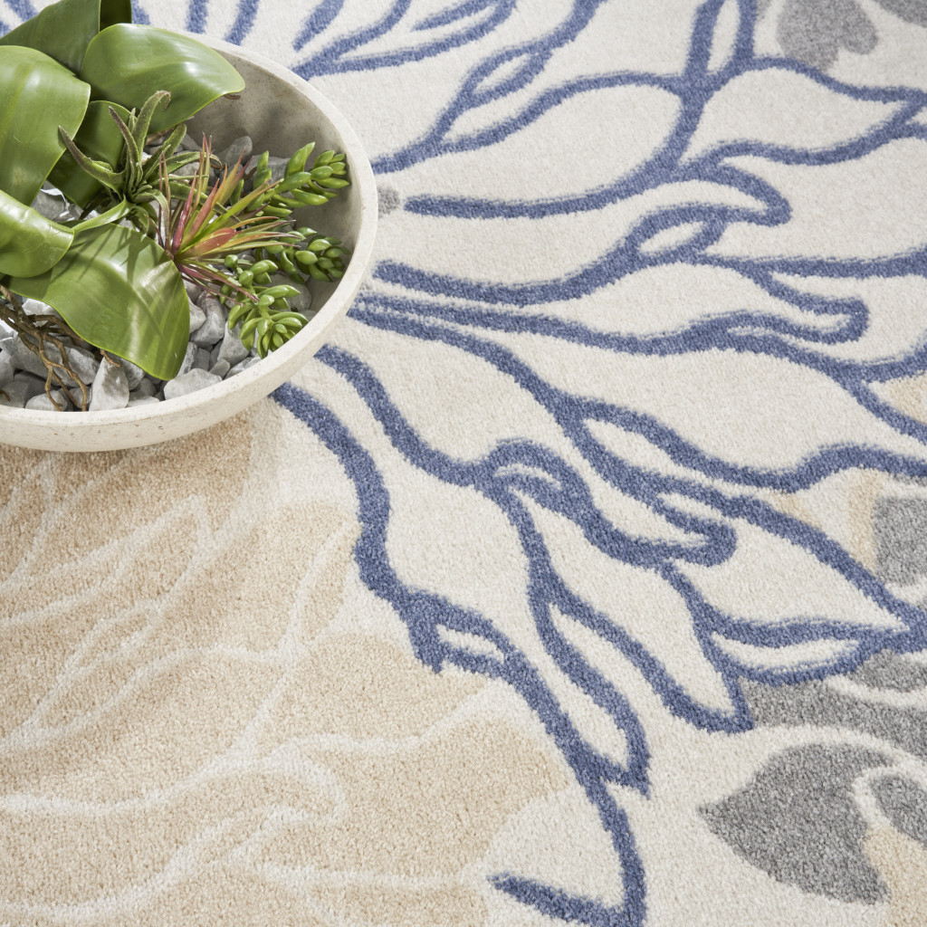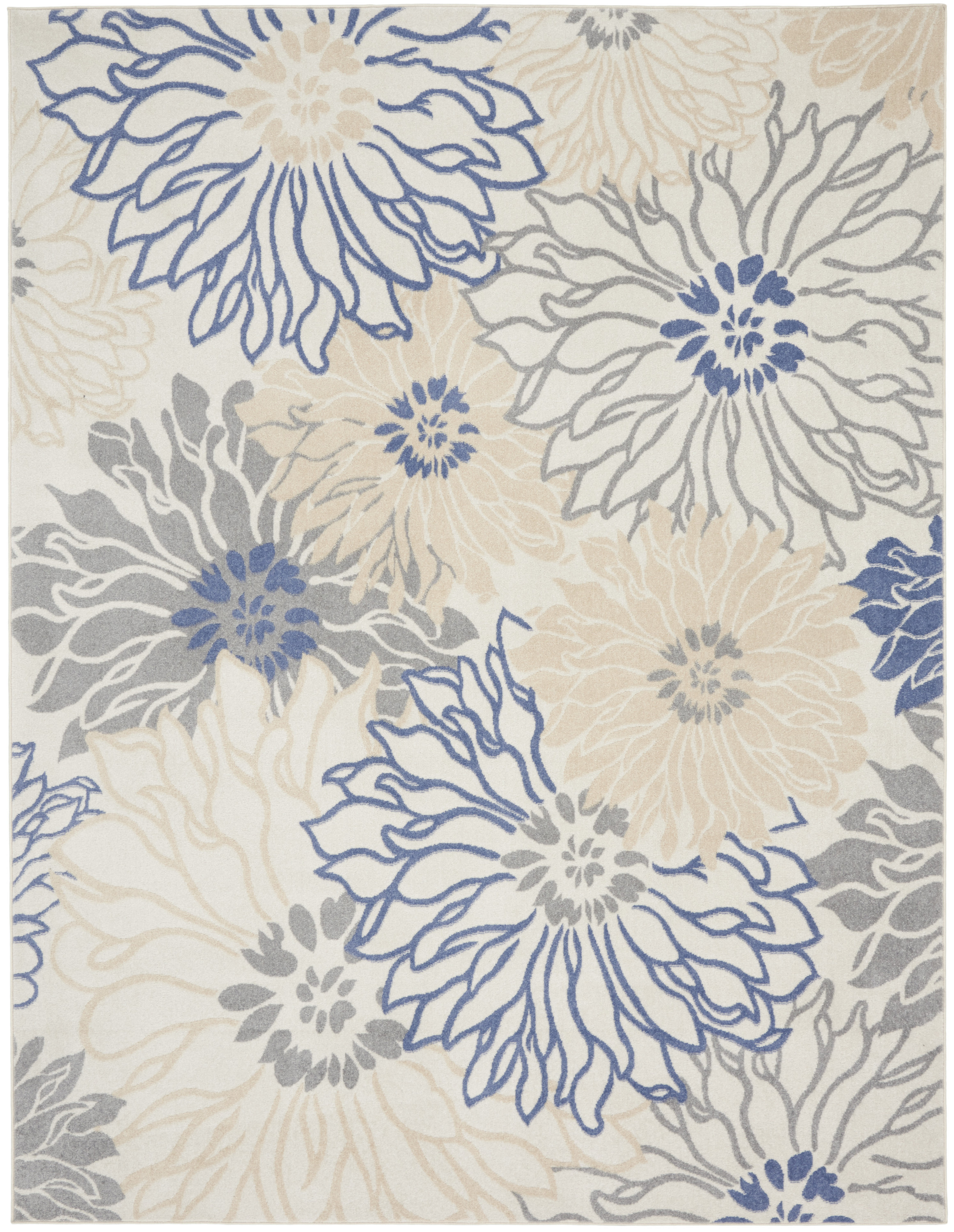 Add great coloration and comfortable texture to your space with this 8-foot x 10-foot ivory gray and blue floral area rug. Built to last, this rug crafted from polypropylene fibers is known for its durability and long lasting appeal. Rugs are a great way to showcase your style, hide imperfections, warm your home and reduce noise. This larger sized, contemporary styled rug is ready to create a focal point or statement piece in your room. 96-inch h x 120-inch w x 0.5-inch d.