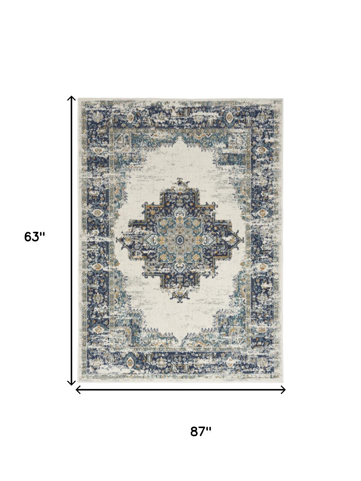 Add some artistry to your room with this 5' x 7' cream floral power loom distressed area rug. This rectangle shaped rug features a floral design in cream to give it visual interest. A classic shape marries with good looking design for your space Made in Turkey, this rug offers high quality combined with good looking designer sensibilities. Area Rugs help to give warmth and sense of home to your space. .50" H x 63.00" W x 87.00" D