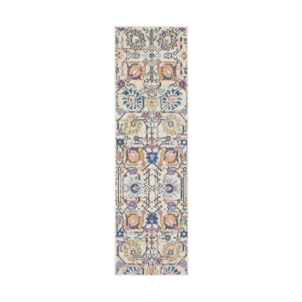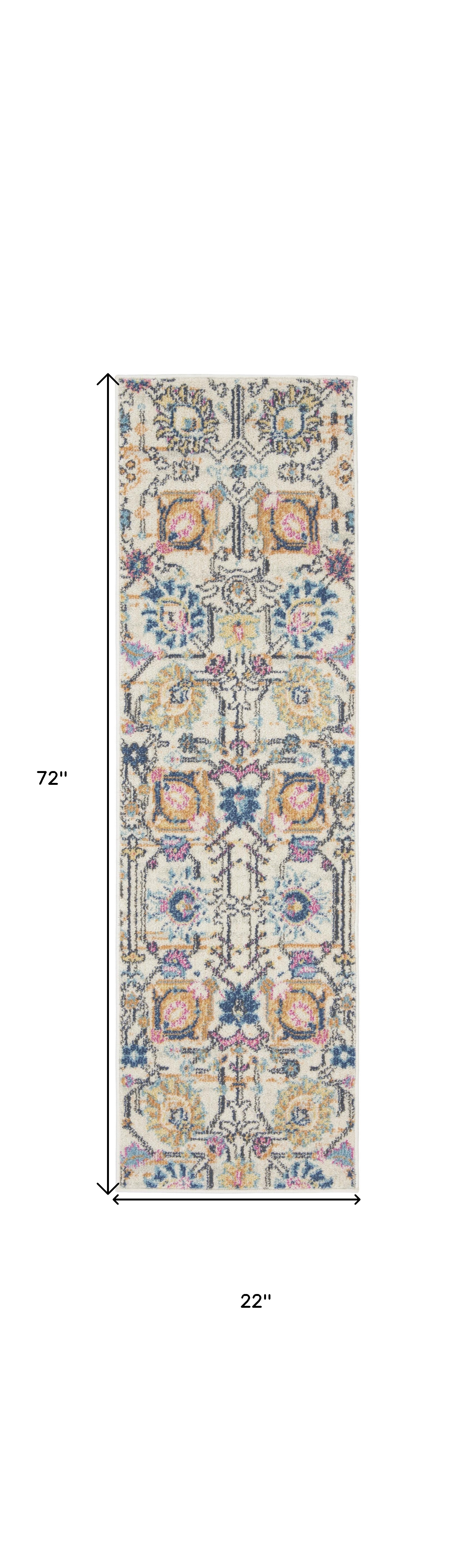 Set an inviting tone in your space with this 6' cream floral power loom runner rug. This runner shaped rug features a floral design in cream to give it visual interest. A classic shape marries with good looking design for your space Made in Turkey, this rug offers high quality combined with good looking designer sensibilities. Place this area rug against a hardwood or tile floor and it will enliven your living space with style and sophistication. .50" H x 22.00" W x 72.00" D