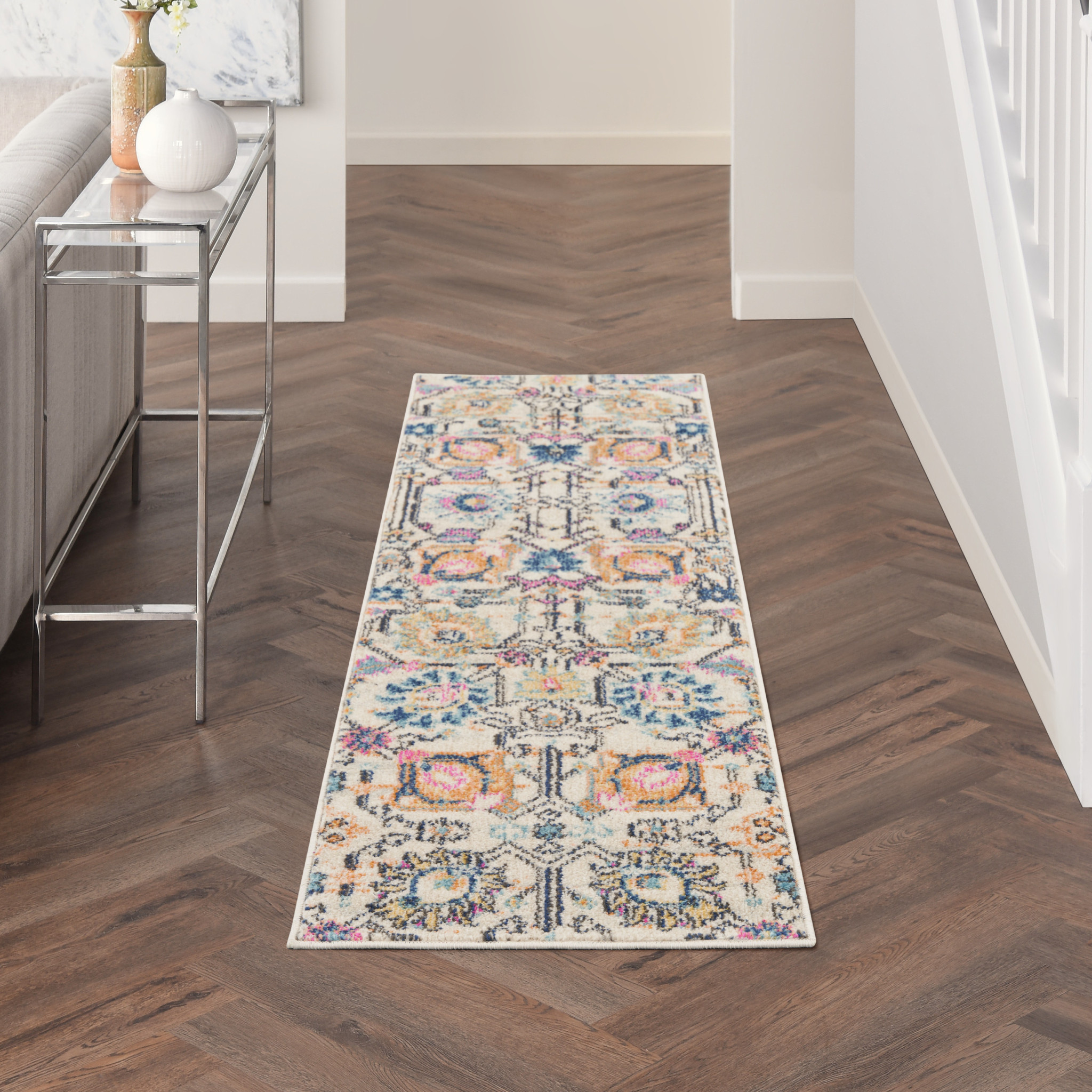 floral power loom runner rug, loom runner rug, power loom runner rug, cream floral power loom runner, floral power loom runner |