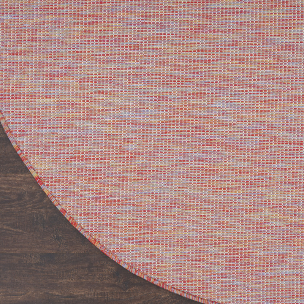 Add some artistry to your room with this 8-foot rainbow round indoor outdoor area rug. Versatile in use, durable, and easy to maintain, this rug is an ideal solution to add a decorative and inviting touch to your indoor or outdoor space. Crafted through machine-made construction, it ensures consistent quality and durability. The vibrant rainbow color adds a playful charm, making it a striking centerpiece for patios or living areas. Enjoy effortless style and functionality with this stunning round rug. 96-inch h x 96-inch w x 0.25-inch d.