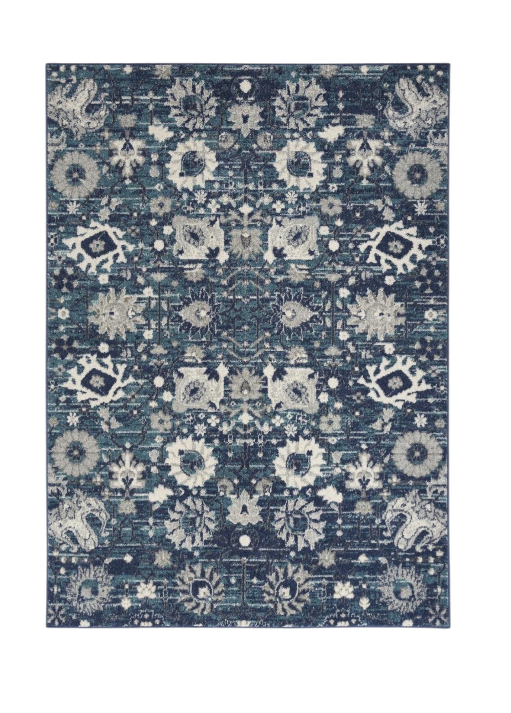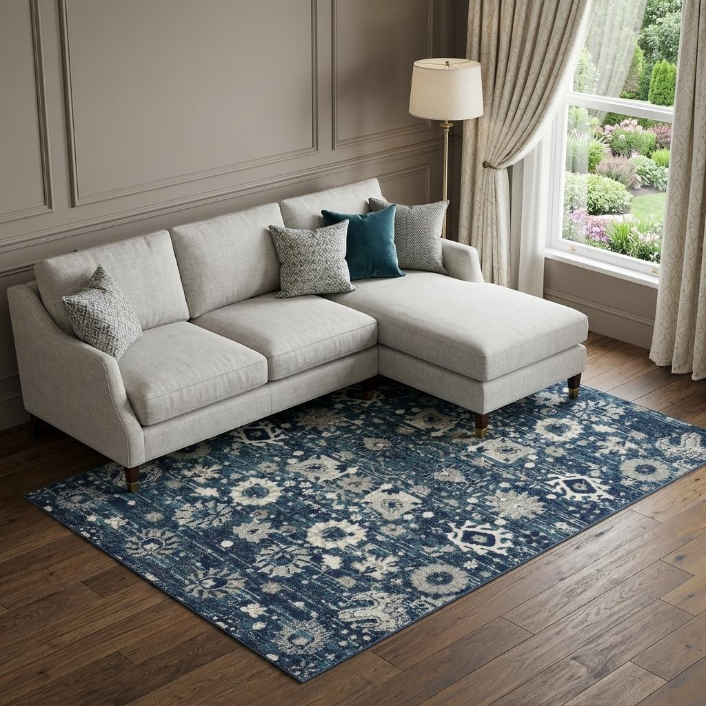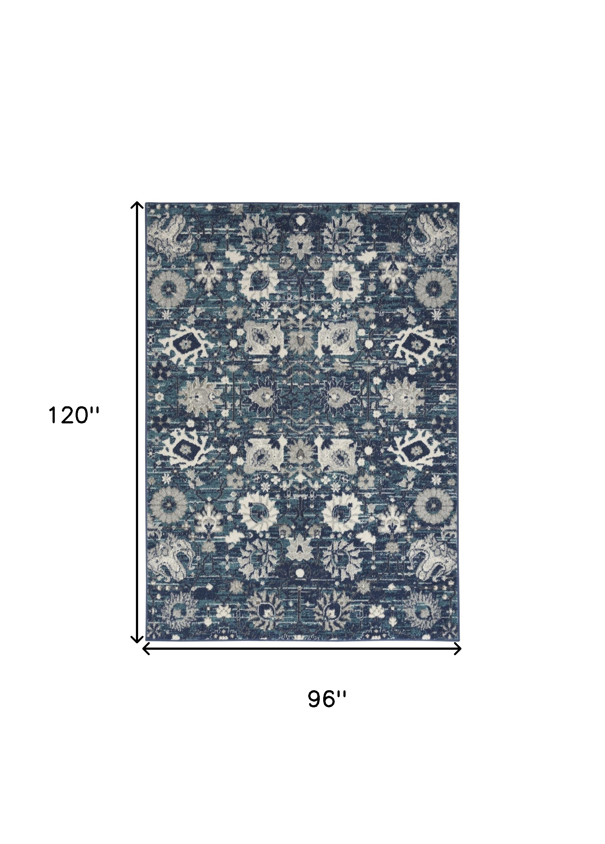 Add some artistry to your room with this 8' x 10' navy blue floral power loom distressed area rug. This rectangle shaped rug features a floral design in navy blue to give it visual interest. A classic shape marries with good looking design for your space This superior Turkish rug represents the highest quality and is built to last. Area Rugs help to give warmth and sense of home to your space. .50" H x 96.00" W x 120.00" D