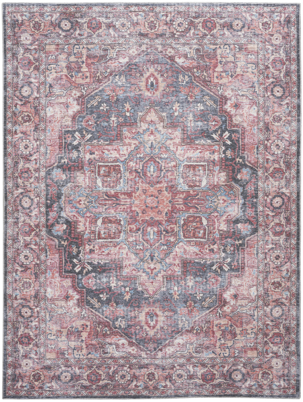 Add great coloration and comfortable texture to your space with this 8' x 10' red floral power loom distressed washable area rug. This rectangle shaped rug features a floral design in red to give it visual interest. A classic shape marries with good looking design for your space This superior Turkish rug represents the highest quality and is built to last. Place this area rug against a hardwood or tile floor and it will enliven your living space with style and sophistication. .28" H x 94.00" W x 118.00" D