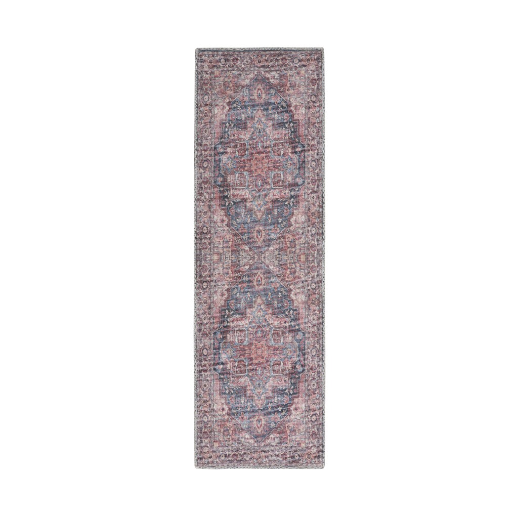 This 10' red floral power loom distressed washable runner rug, is a great way to add warmth to a room. This runner shaped rug features a floral design in red to give it visual interest. A classic shape marries with good looking design for your space This superior Turkish rug represents the highest quality and is built to last. Area Rugs help to give warmth and sense of home to your space. .28" H x 26.00" W x 120.00" D