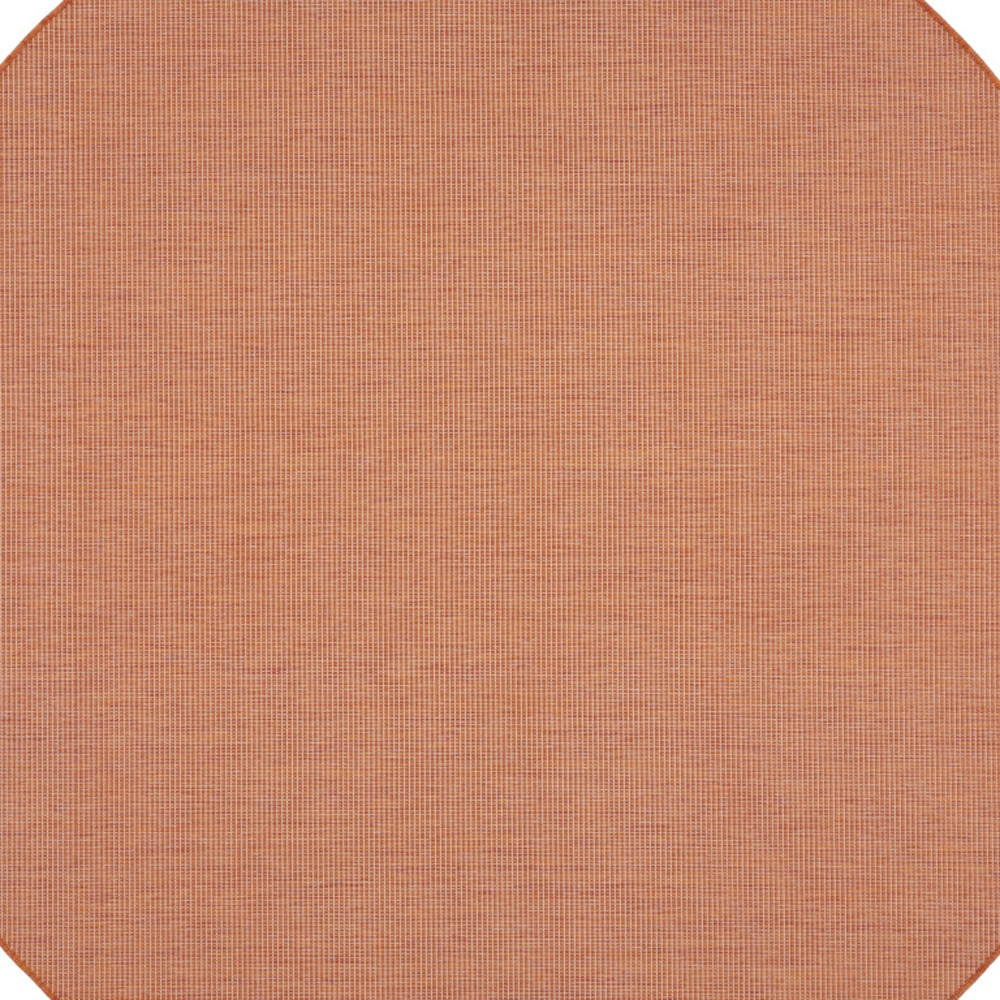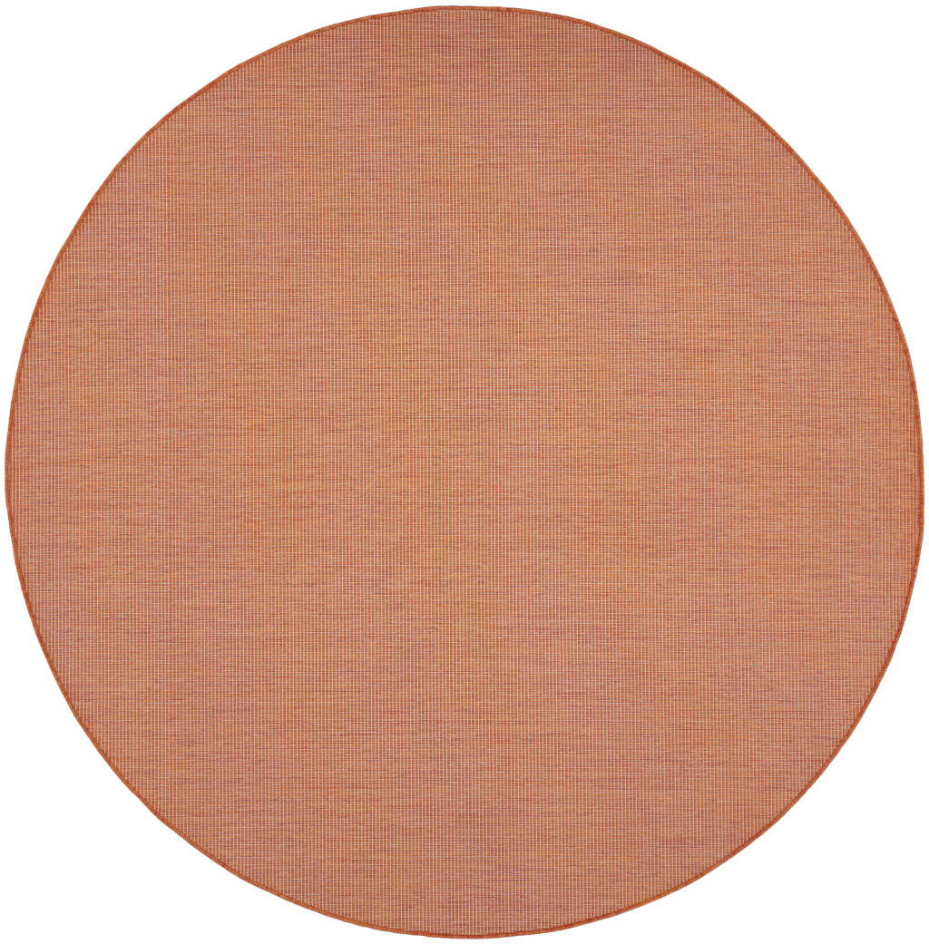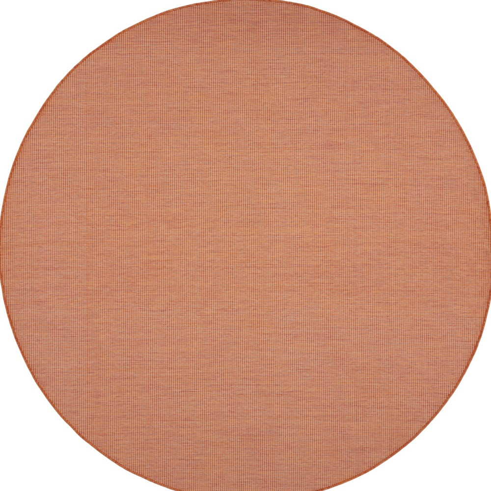 Add some artistry to your room with this 8-foot terracotta indoor outdoor area rug. This geometric round shaped rug features a solid color that combines hue and shape for a great look. Solid colors are versatile and will blend with any existing decor style. Versatile in use, durable, and easy to maintain, this rug is an ideal solution to add a decorative and inviting touch to your indoor or outdoor space. 96-inch h x 96-inch w x 0.25-inch d.